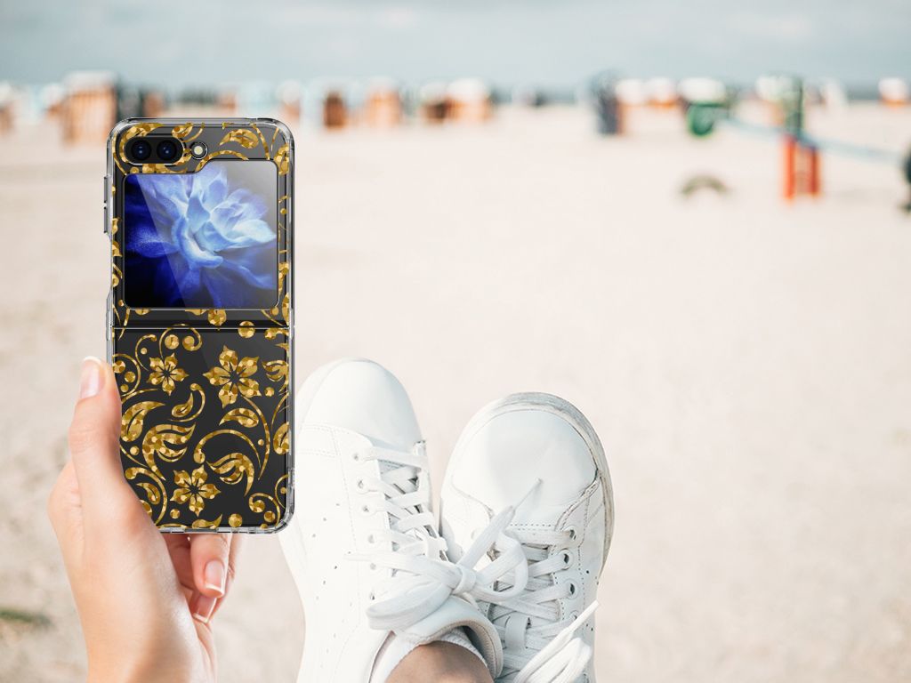 Ben je op zoek naar een uniek telefoonhoesje voor je Samsung Galaxy Z Flip 5? Dan ben je bij B2C Telecom aan het juiste adres! Speciaal voor jou hebben we dit prachtige Gouden Bloemen design in onze collectie hoesjes opgenomen. Het design wordt bedrukt op een TPU Case en is gemaakt van flexibel rubber. Het design wordt alleen aan de bovenkant van het hoesje bedrukt en de randen blijven transparant. Aan de zijkanten zijn uitsparingen gemaakt waardoor je met gemak alle knoppen en poorten kunt bedienen. Wij adviseren om dit hoesje in combinatie met een screenprotector te gebruiken voor een langere levensduur van je telefoon. Wil je dit design hoesje nog iets extra's geven? Voeg dan gratis je naam of een quote toe! Is dit design hoesje toch niet helemaal wat je zocht? Ontwerp dan zelf een hoesje in ons ontwerpprogramma.
