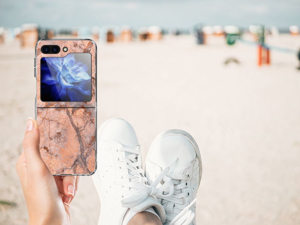 Dit design hoesje met Marmer Oranje is zeer geschikt voor jouw kostbare telefoon. Vanwege zijn prachtige lichtval en vastheid is marmer een zeer gewild bouwmateriaal. Wij kunnen inmiddels concluderen dat dit hoesje met oranje marmer ook zeer gewild is. Beloon jezelf en je telefoon met dit hele mooie Samsung Galaxy Z Flip 5 TPU Siliconen Hoesje. Naast het oranje marmer zijn er de diverse marmersoorten in een ruim kleurenpallet te krijgen. Deze tpu case met marmer in oranje wordt aan de achterzijde bedrukt. De case beschikt over opstaande randen en is gemaakt van onbreekbaar materiaal. De randen van de case in oranje marmer blijven transparant. Wij hebben onze designer veel vrijheid gegeven met het ontwerpen dit mooie hoesje. Het resultaat zie je terug in deze tpu case met oranje marmer, dat een hele goede bescherming is voor jouw smartphone. Des te mooi dat wij voor variatie hebben gekozen door een hoesje met oranje marmer aan de bieden.