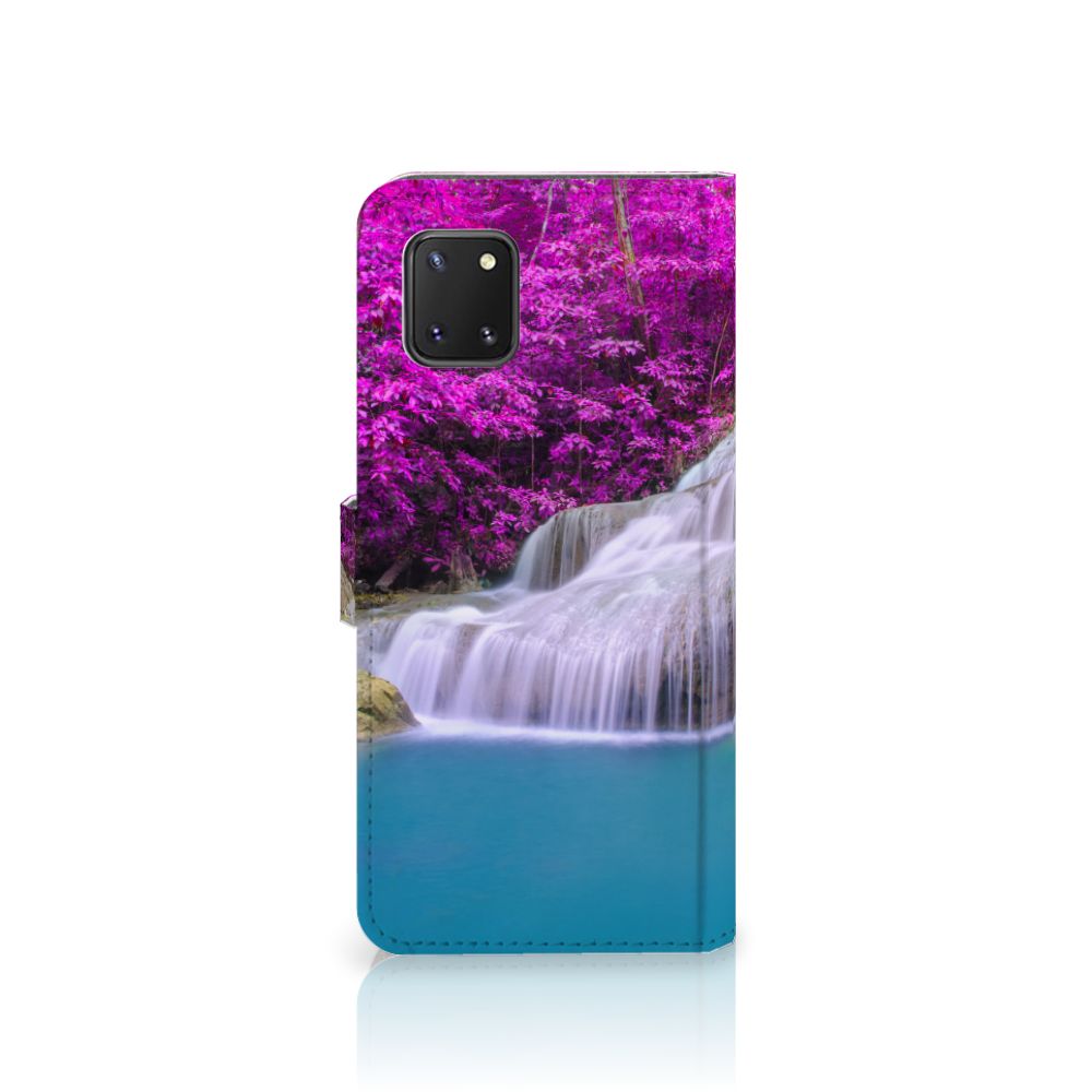 Op deze Samsung Note 10 Lite Flip Cover zie je een kalme waterval en de achtergrond is gevuld met paarse bomen. Samen creëert dit een prachtig en kleurrijk spektakel, iets wat je graag op je Samsung Note 10 Lite hoesje ziet. Wanneer je hiernaar kijkt, word je direct kalm. Als jij je even boos of verdrietig voelt, hoef je alleen maar naar jouw boekhoesje te kijken om weer blij te worden. Ook jouw telefoon zal blij zijn met deze Flip Cover aangezien deze goede bescherming biedt. Als jij je telefoon per ongeluk laat vallen, is er niets aan de hand. Het hoesje zorgt ervoor dat de telefoon intact blijft. Zelfs als hij op het beeldscherm zou vallen, is er dankzij de magnetische sluiting, niets aan de hand.