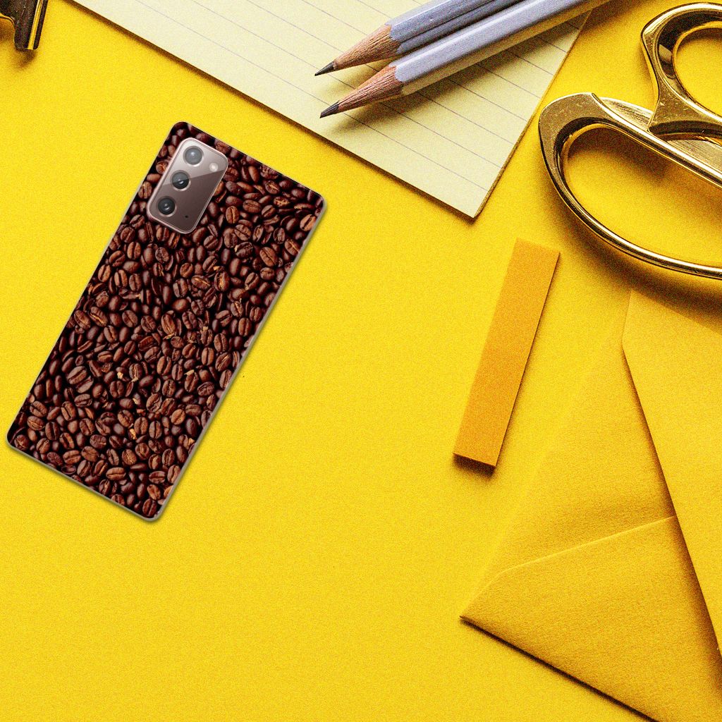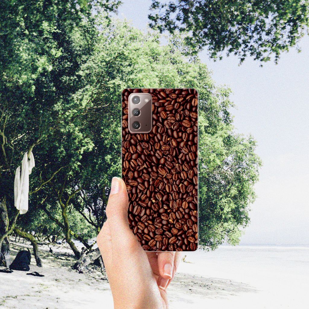 Als je de lekkerste koffie wilt dan kun je beste koffiebonen kopen. Koffie is namelijk het verst wanneer je de bonen zelf maalt. En wie houdt nou niet van de geur van vers gemaalde koffie? Daarom hebben wij de mooiste Koffiebonen op een smartphone hoesje gezet. Ben je barista, dan is dit het perfecte hoesje voor jouw werktelefoon. De koffiebonen staan op een tpu case. Dit is een zeer flexibel hoesje, dat altijd en overal in je broekzak past. Alleen de bovenkant van dit hoesje wordt door ons bedrukt, op zeer duurzame manier. Mensen die houden van een stevige espresso, kiezen voor dit degelijke design hoesje met bonen. Er staan geen bonen op de zijkanten van een Samsung Note 20 Siliconen Case. Wel kun je zelf een eigen tekst toevoegen aan het design. Hoe mooi is dat?