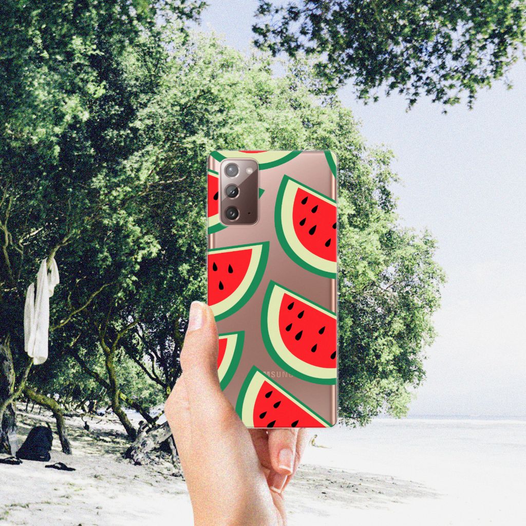 Watermeloenen zijn uitstekende dorstlessers, misschien dat je daarom juist in de zomermaanden extra enthousiast raakt van dit design hoesje Watermelons. Jij blijft gezond als je zo nu en dan een watermeloen neemt, jouw smartphone blijft in tact als je er deze Samsung Note 20 Siliconen Case omheen doet. Deze tpu case wordt alleen aan de bovenkant bedrukt met watermeloenen is zeer flexibel. De randen van het hoesje blijven transparant. Je kunt ook kiezen voor andere soorten fruit op je hoesje. Kijk maar eens naar onze andere design hoesjes op onze website.