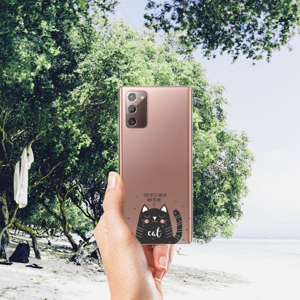 Ben je op zoek naar een uniek telefoonhoesje voor je Samsung Note 20? Dan ben je bij B2C Telecom aan het juiste adres! Speciaal voor jou hebben we dit prachtige Cat Good Day design in onze collectie hoesjes opgenomen. Het design wordt bedrukt op een Telefoonhoesje met Naam en is gemaakt van flexibel rubber. Het design wordt alleen aan de bovenkant van het hoesje bedrukt en de randen blijven transparant. Aan de zijkanten zijn uitsparingen gemaakt waardoor je met gemak alle knoppen en poorten kunt bedienen. Wij adviseren om dit hoesje in combinatie met een screenprotector te gebruiken voor een langere levensduur van je telefoon. Wil je dit design hoesje nog iets extra's geven? Voeg dan gratis je naam of een quote toe! Is dit design hoesje toch niet helemaal wat je zocht? Ontwerp dan zelf een hoesje in ons ontwerpprogramma.