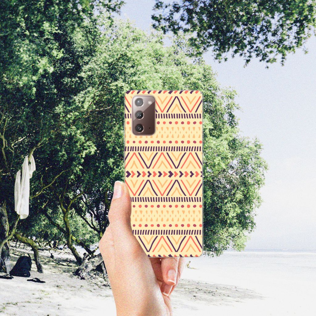 De Azteken leefden tussen 1200 en 1521 in het huidige Mexico. De mooie Aztec-patronen waar zij bekend om stonden, zien we nu nog op kleding, stoffen en tassen. Wie had toen kunnen bedenken dat we diezelfde prints honderden jaren later zelfs op een telefoonhoesje zouden vinden? Dit kleurrijke Aztec Yellow-hoesje is perfect voor iedereen die een stukje geschiedenis bij zich wil dragen maar ook gewoon een mooi patroon op zijn hoesje wil. Dit vrolijke, kleurrijke ontwerp staat op een TPU bumper voor de Samsung Note 20. TPU is flexibel en onbreekbaar. Zo is je telefoon aan de achterkant en de randen heel goed beschermd. De case is aan de bovenkant bedrukt, de randen blijven transparant.