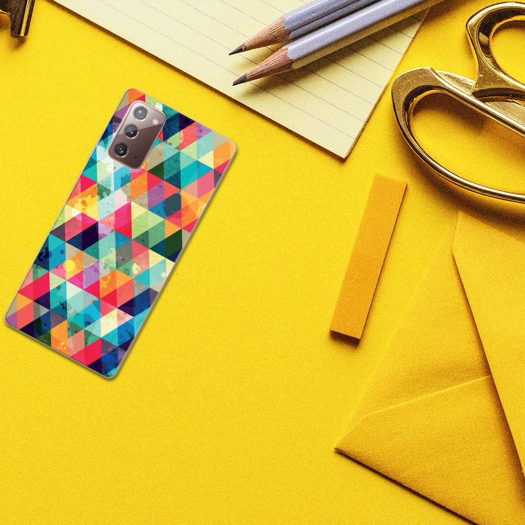Van dit geruite design hoesje moet je een beetje houden. Maar als je het eenmaal in bezit hebt, ben je waarschijnlijk binnen no time verkocht. Het design heeft ruitjes in alle kleuren van de regenboog en door de grijze achtergrond kan het hoesje enigszins druk overkomen. Maar tegelijkertijd is dit de kracht van het hoesje. Met dit design hoesje Geruit zal je namelijk heel erg opvallen. Dit is voor veel vooral jonge smartphone gebruikers een belangrijk voordeel. Deze geruite print staat op een Samsung Note 20 TPU bumper. Dit zeer flexibele smartphone hoesje heeft alle nodige uitsparingen en past altijd in je broekzak. De case is aan de bovenkant bedrukt, de randen blijven transparant.