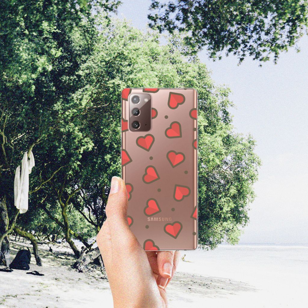 Met deze Samsung Note 20 TPU bumper met hartjes op een grijs met witte achtergrond maak jij een goede beurt als je dit cadeau geeft aan je vriend of vriendin. Bekroon je liefde voor elkaar met deze hele mooie tpu case, die jouw telefoon met name aan de achterkant en zijkanten goed beschermt. Dit is echt een prachtige manier om je telefoon te beschermen. Het tpu hoesje met design met Hearts is ook nog eens zeer praktisch, mede door het buigzame materiaal en de uitsparingen. Als je telefoon met het TPU hoesje uit je hand valt, stuitert het als het ware meteen weer terug in je hand en zal het scherm in tact blijven. De case heeft namelijk opstaande randen aan de voorkant. Alleen de bovenkant van de case wordt bedrukt met hartjes, de zijkanten zijn doorzichtig. Voor een habbekrats is dit hoesje met hartjes op een grijs met witte achtergrond te bestellen.