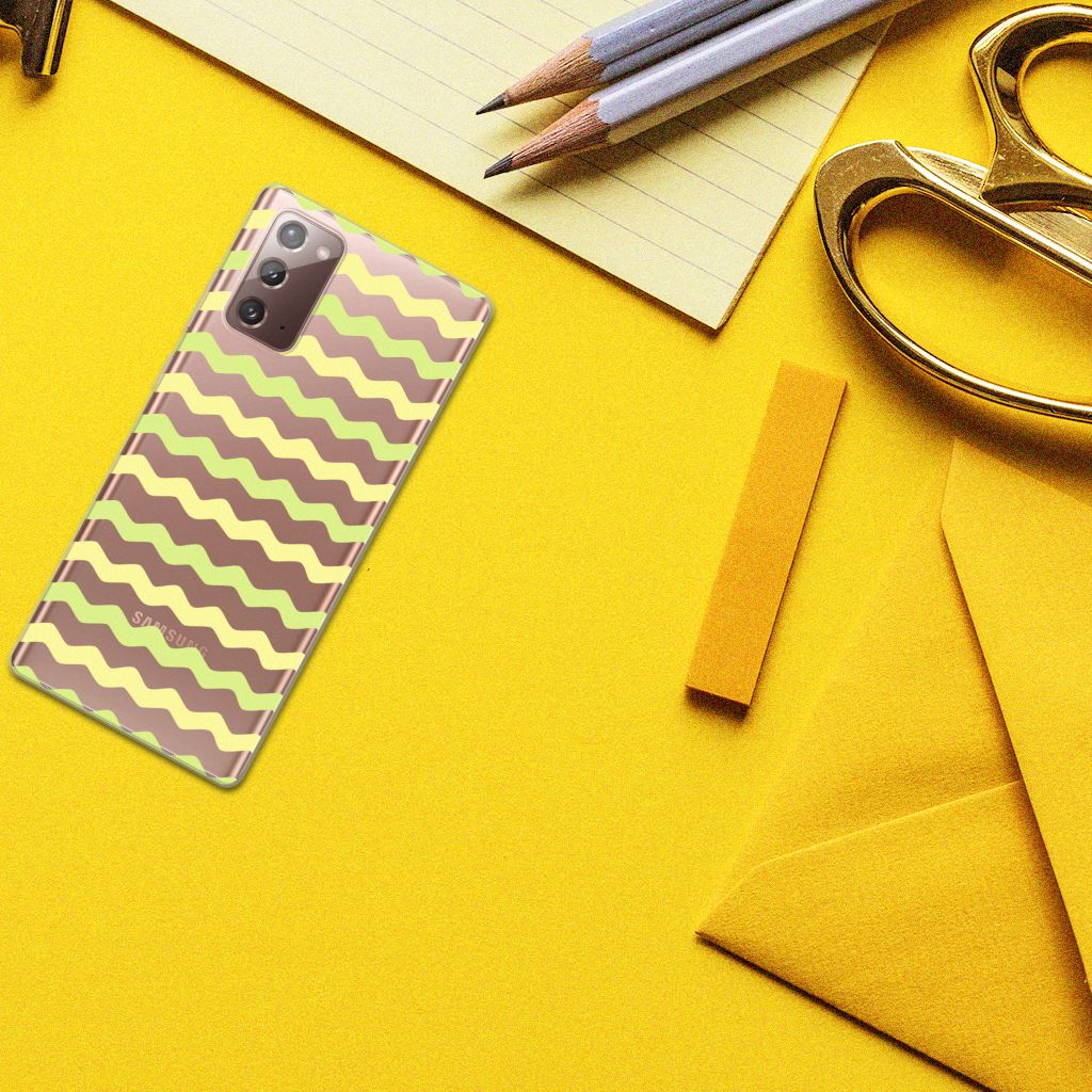 Dit Waves Yellow design hoesje met licht groene en gele golven is speciaal ontworpen voor jouw telefoon. We hebben een vleugje lichtgeel toegevoegd, zodat de case er een beetje spannender en leuker uitziet. Dit licht groene hoesje met licht groene golven ziet er oogstrelend uit. Het wordt in ons eigen magazijn bedrukt, in zeer goede kwaliteit inkt. Wij kunnen dus een zeer duurzaam hoesje met licht groene golven garanderen. Dit hele mooie Samsung Note 20 TPU bumper heeft vele extra’s. Is dit licht groene design hoesje je op het lijf geschreven? Grijp dan nu je kans. Deze TPU case met lichtgroene golven wordt alleen aan de bovenkant bedrukt en is zeer flexibel. De randen van het hoesje met licht groene golven blijven transparant en worden niet bedrukt. Met dit hoesje past jouw telefoon altijd in je broekzak.