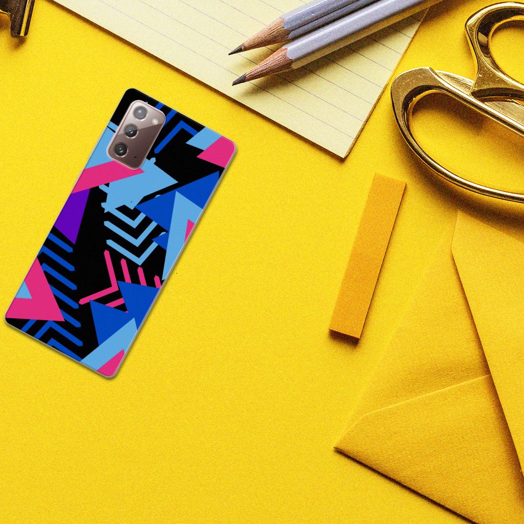 Dit fraaie hoesje met het design Funky Triangle is alles behalve eenvoudig en sober. Dat komt goed uit, want je hebt natuurlijk ook geen doorsnee telefoon gekocht. Mocht je dat wel hebben gedaan, dan wordt hij meteen speciaal als je een Samsung Note 20 TPU Hoesje koopt voor een spotprijsje. Een ding is zeker: opvallen ga je beslist met dit hoesje met paarse, roze en blauwe driehoeken. Jij zult in je element zijn met dit design hoesje met paarse, roze en blauwe driehoeken, omdat het er schitterend uitziet en jouw telefoon zeer goed beschermt. Het smartphonehoesje beschermt jouw telefoon vooral aan de zijkanten en achterkant en wordt alleen aan de bovenzijde bedrukt met paarse, roze en blauwe driehoeken. De zijkanten blijven doorzichtig. De paarse, roze en blauwe driehoeken maken de case helemaal af.
