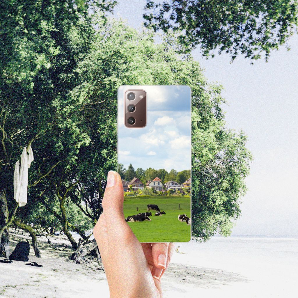 Een koe moet goed verzorgd worden. Door ze buiten te laten lopen en grazen, hebben ze minder kans om ziek te worden. De koe is een kuddedier en graast het liefst met soortgenoten. Dit levert ook mooie plaatjes op, zoals je kunt zien op dit design hoesje met Koeien. Dit smartphone hoesje met koeien ziet er super strak uit en is voorzien van verschillende uitsparingen. Een Samsung Note 20 TPU Hoesje met grazende koeien beschermt jouw smartphone vooral aan de achterkant en zijkanten. De zijkanten zijn transparant, de rest van het hoesje is bedrukt. Koeien hebben graasperioden van ongeveer een uur. Deze worden afgewisseld worden door rust- en herkauwperioden. Ze herkauwen het liefst liggend, behalve wanneer het regent. Zo goed als grazen voelt voor koeien, zo duurzaam zal jouw smartphone worden met dit design hoesje. Het TPU is schokabsorberend en zeer flexibel. Bovendien is het niet te breken. De TPU case past altijd in je broekzak en is zeer handig.
