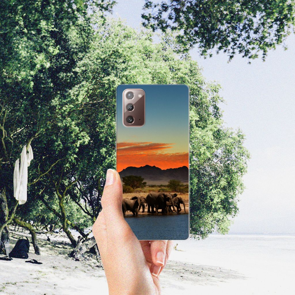 Dit hoesje is zo sterk als een olifant. Dat is goed nieuws, want jouw telefoon heeft een zeer goede bescherming nodig. Dat krijg je met dit design hoesje met print van Olifanten. De Afrikaanse olifant, het allergrootste landdier ter wereld, heeft waarschijnlijk het meest te lijden gehad van stroperij om het ivoor. Deze dieren verdienen dus een goede bescherming, net als jouw smartphone. Met een Samsung Note 20 TPU Hoesje met olifant erop krijg je dit zeker voor elkaar. De tpu case beschermt vooral de achterkant en zijkanten van je telefoon en is gemaakt van onbreekbaar materiaal. De sterke olifant komt zeer goed tot zijn recht op deze case, die zeer flexibel is. Alleen de bovenzijde van de case wordt bedrukt met olifanten, de zijkanten blijven transparant.