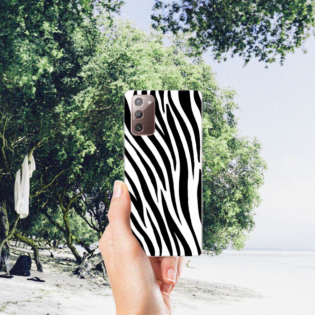 Deze Samsung Note 20 TPU Hoesje met zwart en witte zebra strepen kan exclusief in het bezit van jou komen. Zeker als je er zelf nog unieke teksten en/of beelden aan toevoegt van jezelf. Je hoesje krijgt dan een eigen identiteit, net zoals de witte en zwarte strepen uniek zijn bij iedere Zebra. Deze zijn te vergelijken met de vingerafdrukken bij de mens. De strepen en patronen zijn nooit identiek aan die van een andere zebra. Ben jij toe aan een uniek tpu case? Pak dan dit design met zebra strepen als basis. Het tpu hoesje is zeer flexibel en wordt alleen aan de bovenzijde bedrukt. De randen van dit flexibele hoesje blijven doorzichtig. Een zebra gebruikt de strepen ook om zich te camoufleren in de omgeving om zo uit het zicht te blijven van de roofdieren. Jij zorgt voor de perfecte bescherming van je smartphone met dit design hoesje in zebra kleuren.