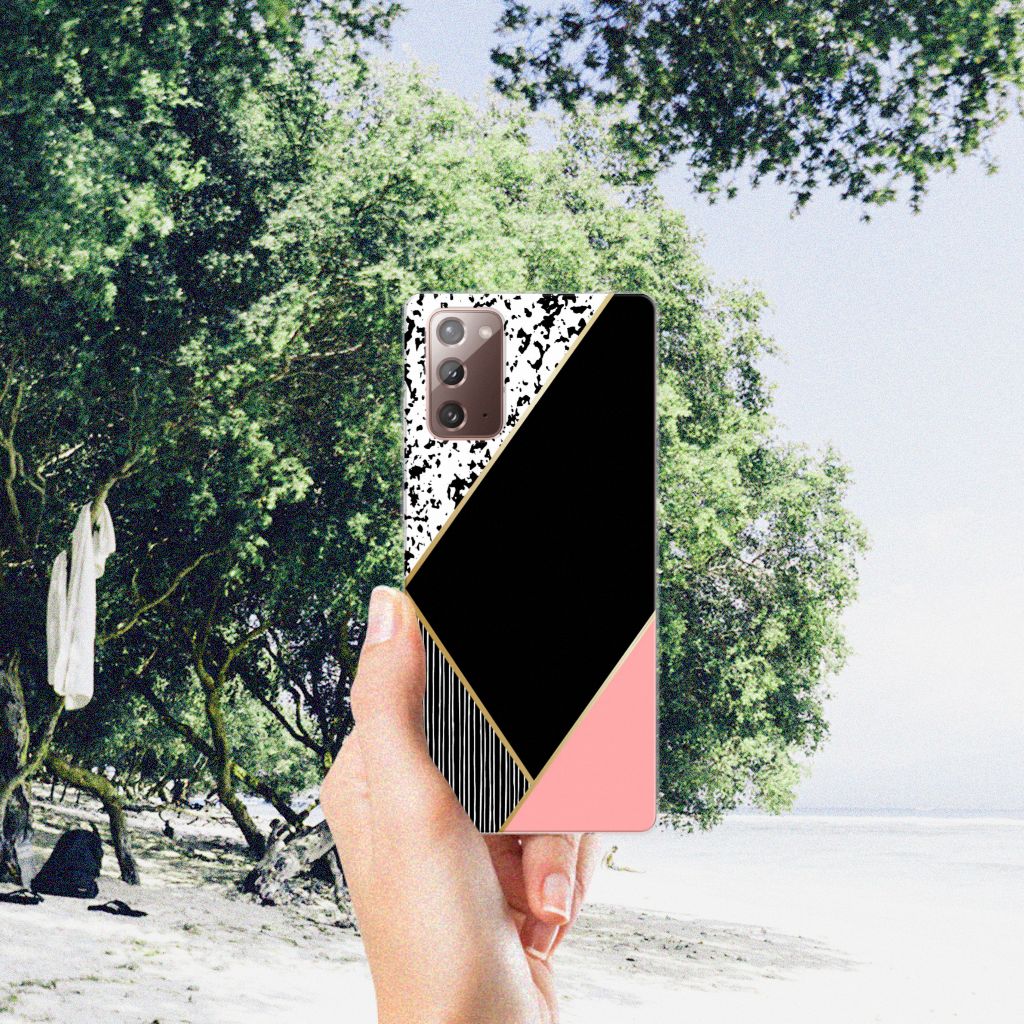 TPU Hoesje Samsung Note 20 Zwart Roze Vormen Design