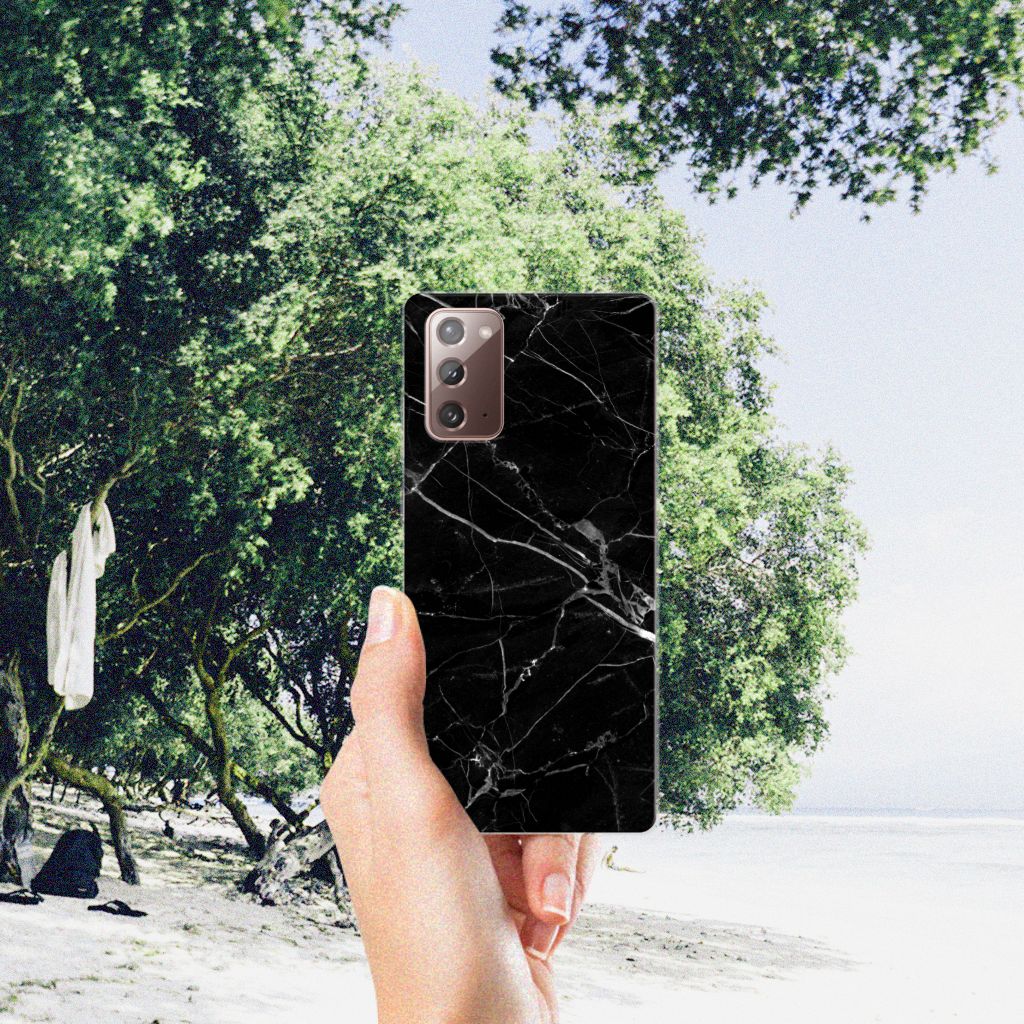 Dit design hoesje met Marmer Zwart is voor de artistieke personen onder ons. De Grieken en Romeinen wisten het materiaal al te waarderen door het in de bouw toe te passen. Naast het witte marmer met haar zacht grijze geaderde belijning zijn de diverse soorten in een gevarieerd kleurenpallet te krijgen. We hebben mooie kleuren op design hoesjes gezet, zoals in dit geval zwart marmer. Dit is een Samsung Note 20 TPU Siliconen Hoesje met marmer in bruine kleur. Het marmer wordt bedrukt op de voorkant van een tpu case, die beschikt over opstaande randen aan de voorkant en heel goed combineert met een screenprotector van glas of van folie. De rijkdom aan kleuren en varianties in afwerking geeft ontwerpers de vrijheid om met marmer hele mooie architectonische projecten te realiseren. Wij hebben onze designer tevens veel vrijheid gegeven. Het resultaat zie je terug in deze tpu case met zwart marmer, die jouw smartphone goed beschermt. De zijkanten van de case worden niet bedrukt met het zwarte marmer.