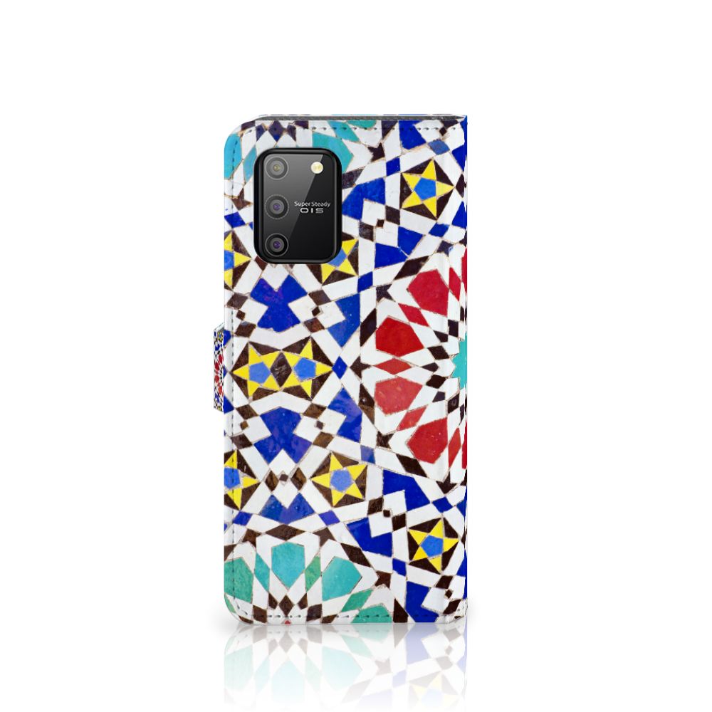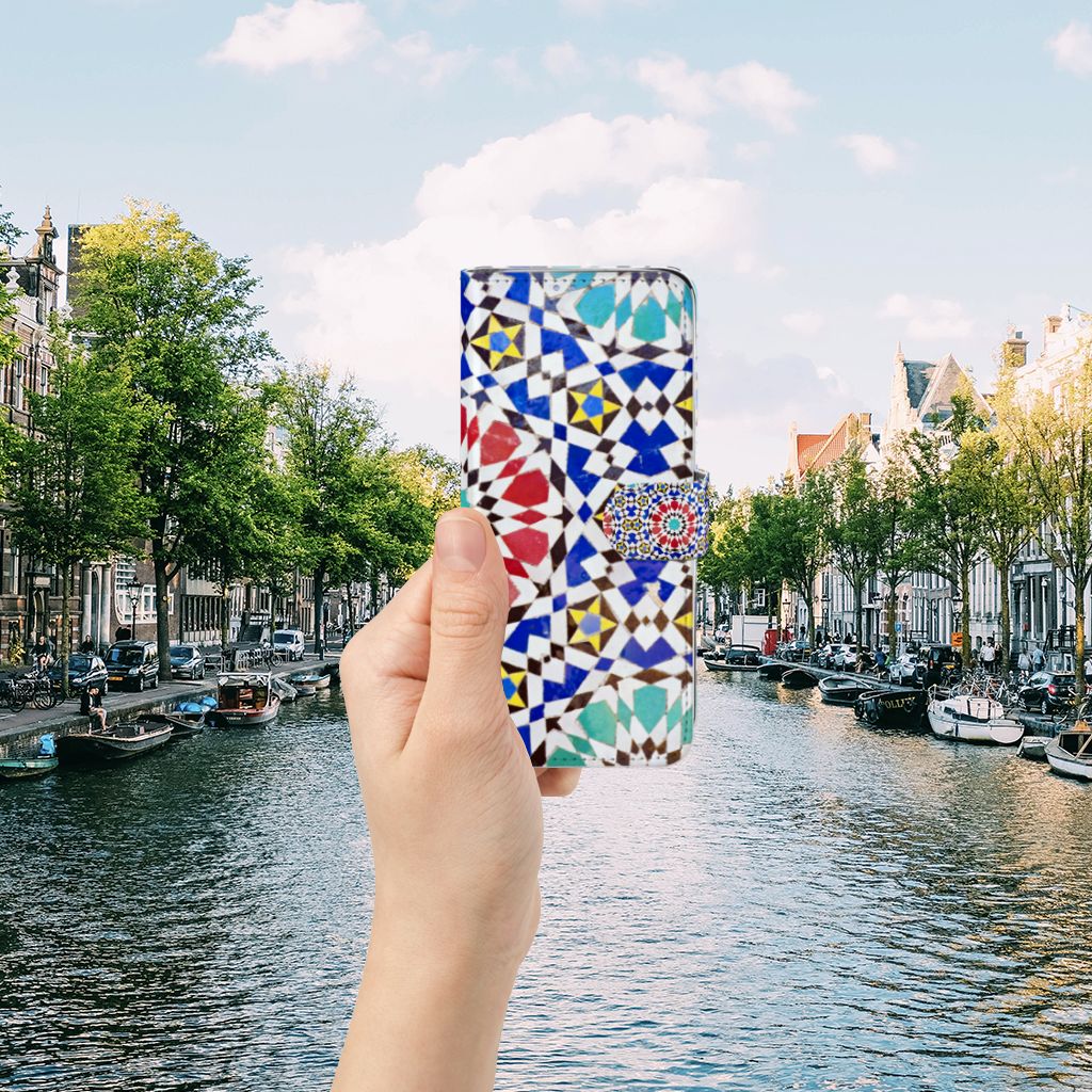 Aan design hoesjes met kunstvormen geen gebrek in onze uitgebreide collectie. Wat dacht je van dit design hoesje met Mozaïek . Dit is een kunstvorm waarbij een grote afbeelding wordt gemaakt uit een groot aantal kleine gekleurde steentjes (tesserae), die in een vloer of wand worden gemetseld. Deze gekleurde steentjes zie je terug op dit boekhoesje met design van mozaïek. Een boekhoesje is zo’n beetje de veiligste case die er bestaat. Een Samsung S10 Lite Bookcase met print zorgt voor een volledige bescherming van je smartphone en wordt aan alle zijden bedrukt met mozaïek. Een deel van de foto’s staat ook op het lipje aan de buitenzijde. Verder is de houder aan de binnenzijde van TPU. De Grieken en Romeinen beheersten de kunst al. Op diverse plaatsen in Europa zijn mozaïeken teruggevonden die tot op de dag van vandaag goed bewaard zijn gebleven. Met een hoesje met mozaïek blijft jouw telefoon in tact. Je pasjes en briefgeld kun je in de vakjes aan de binnenzijde stoppen