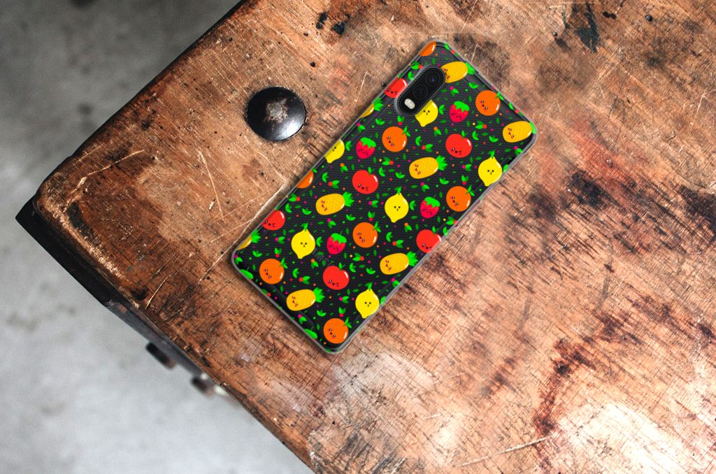 Een fris, fruitig en vrolijk hoesje, deze case met afbeeldingen van aardbeien, ananassen, appels, sinaasappels en citroenen. Minstens twee stuks fruit per dag wordt aanbevolen als dagelijkse hoeveelheid voor de mens. Dit verkleint de kans op allerlei ziekten. Dus met het aantal stukken fruit op de Samsung Xcover Pro Siliconen Case zou je wel een maandje zoet moeten zijn. Met het hoesje zelf kun je je hele leven doen, dit is namelijk niet stuk te krijgen. Dit komt door het sterke en flexibele materiaal waarvan het gemaakt is. De vrolijk stemmende case het desing Fruits maakt jouw telefoon dus zeer duurzaam. Zorg ervoor dat jouw smartphone gezond blijft en kies voor dit hoesje met frivool fruit. Een tpu case met fruit wordt alleen aan de bovenkant bedrukt en is zeer flexibel. De randen van het hoesje blijven transparant en worden niet bedrukt met het fruit.