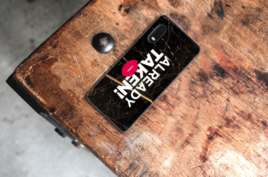 Met deze Samsung Xcover Pro Siliconen hoesje met naam met Already Taken Black tekst maak je duidelijk dat jouw smartphone een kostbaar bezit is, waar je zeer lang over wilt beschikken. Je telefoon neem je waarschijnlijk vaak ter hand, dus dan zal de boodschap als je over dit hoesje beschikt zeker weten overkomen. De TPU case wordt alleen aan de bovenkant bedrukt en is zeer flexibel. De randen van het hoesje blijven transparant. Wil je een eigen tekst op je hoesje zetten? Dit kan ook, met onze Phone Case Designer. Deze unieke ontwerpmodule is ook geschikt om het design uit te breiden met foto’s, effecten en patronen.