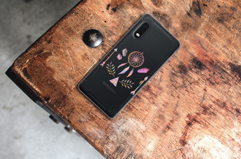 Een dromenvanger werd lang geleden al door een indianenvolk in Noord-Amerika gebruikt om nare dromen te weren. Nu nog hangen mensen over de hele wereld dromenvangers boven hun bed. Maar ook op een telefoonhoesje staat zo’n boho dreamcatcher heel mooi. Dit mooie design dat bestaat uit een tipi, pijlen en dromenvanger heeft veel verschillende prachtige kleuren. Maar omdat het ontwerp minimalistisch en klein is, is het design toch subtiel te noemen. Dit ontwerp staat op een Telefoonhoesje met Naam voor je Samsung Xcover Pro. TPU is flexibel en heel erg sterk. Zo is je telefoon aan de achterkant en de randen heel goed beschermd. De case is aan de bovenkant bedrukt, de randen blijven transparant. Het TPU-hoesje is perfect te combineren met een screenprotector, zo zijn je telefoon en je beeldscherm altijd goed beschermd.