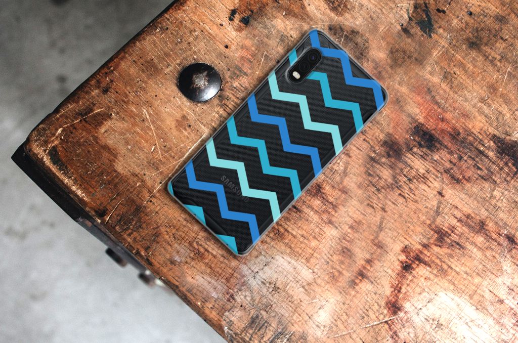 Dit zigzag blauwe design hoesje is speciaal ontworpen voor jou. We hebben bewust verschillende stijlen blauw gebruikt, zodat er voldoende sprake is van variatie. Dit blauwwitte TPU bumper ziet er super strak uit. Dat kan ook niet anders, als je weet dat onze zeer talentvolle designer er hoogstpersoonlijk voor verantwoordelijk is. Hij schudt wekelijks nieuwe designs uit zijn mouw en dit zigzag blauwe hoesje is een van zijn fraaiste creaties. Een heel dik design hoesje, al zeggen we het zelf. Valt dit blauwwitte design hoesje goed bij jou? Bestel het dan vandaag nog en je hebt het morgen in huis. Het design staat op een TPU case. Dit hoesje wordt alleen aan de bovenkant bedrukt en is zeer flexibel. De randen van het hoesje blijven transparant en worden niet bedrukt. Met dit hoesje past jouw Samsung Xcover Pro altijd in je broekzak.