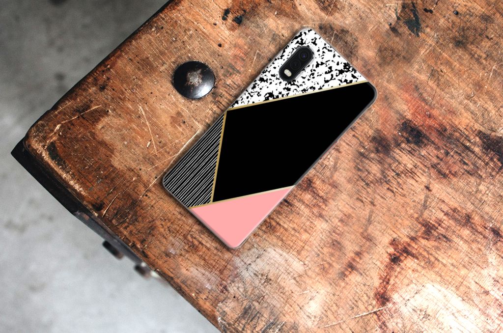 - Met een tpu-siliconen hoesje met roze, zwarte en witte vlakken blijft jouw telefoon in tact.