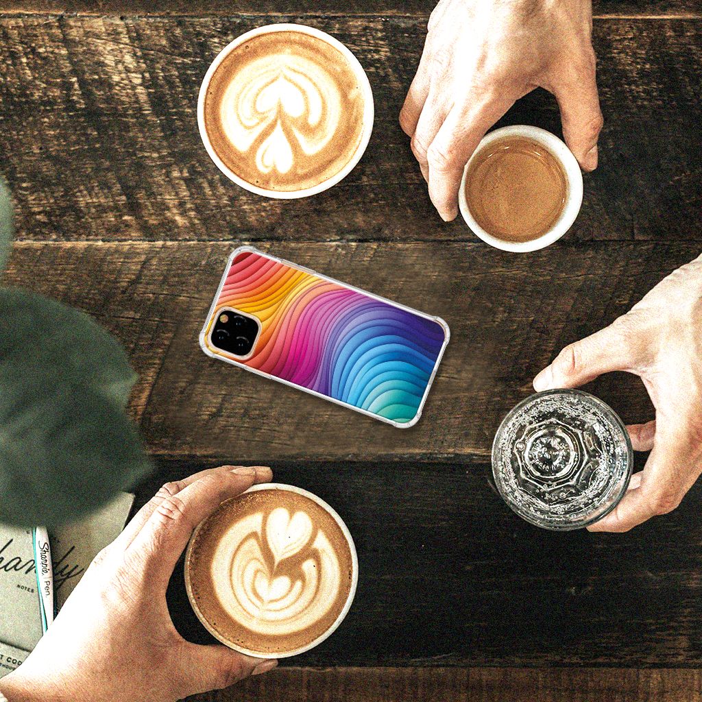 Een regenboog bestaat eigenlijk uit meer dan zeven kleuren, wist je dat? De zichtbare kleuren vloeien geleidelijk in elkaar over, waardoor er eigenlijk meer dan zeven kleuren zijn. Dat wij maar zeven ‘’stroken’’ licht zien, is dus eigenlijk gezichtsbedrog. Toch noemen wij dit hoesje regenboog, omdat wij er blij van worden! Dit design wordt geprint op een Shockproof Case speciaal op maat gemaakt voor de Apple iPhone 11 Pro. Ook fijn zijn de extra dikke hoeken en randen, waardoor je smartphone goed beschermd is bij een val. Alleen de achterkant van je telefoon wordt beschermd. Daarom adviseren wij om dit hoesje in combinatie met een screenprotector te gebruiken. Bestel vandaag nog dit telefoonhoesje met regenboog design!