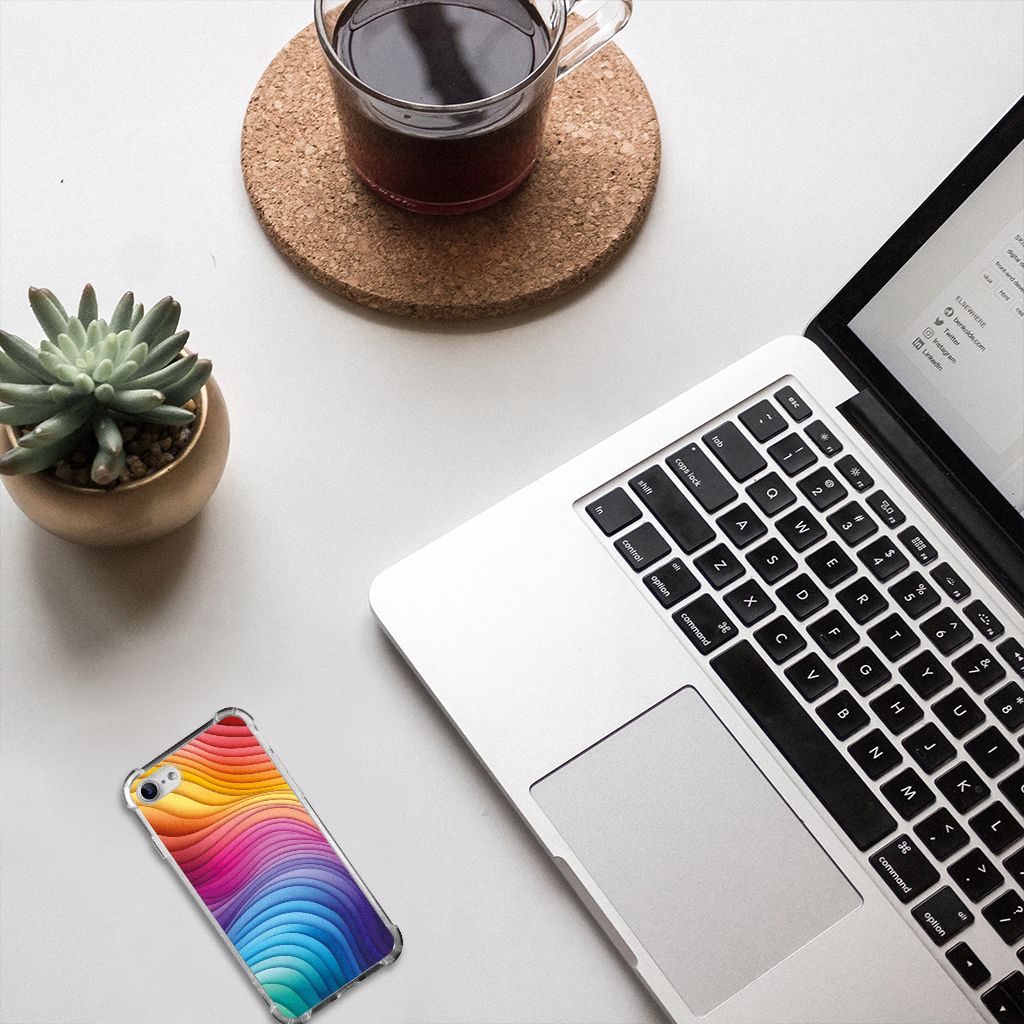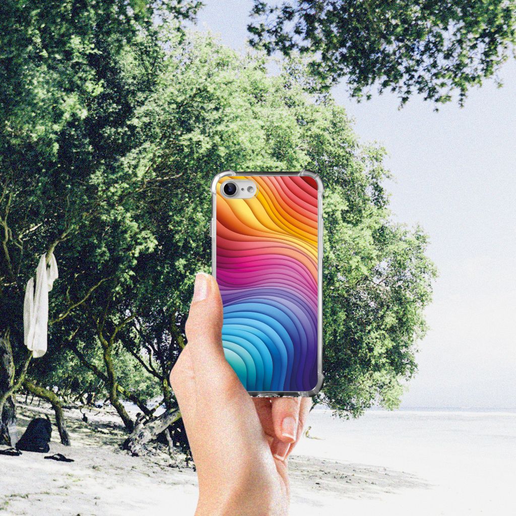 Een regenboog bestaat eigenlijk uit meer dan zeven kleuren, wist je dat? De zichtbare kleuren vloeien geleidelijk in elkaar over, waardoor er eigenlijk meer dan zeven kleuren zijn. Dat wij maar zeven ‘’stroken’’ licht zien, is dus eigenlijk gezichtsbedrog. Toch noemen wij dit hoesje regenboog, omdat wij er blij van worden! Dit design wordt geprint op een Shockproof Case speciaal op maat gemaakt voor de iPhone SE 2022/2020 | iPhone 8/7. Ook fijn zijn de extra dikke hoeken en randen, waardoor je smartphone goed beschermd is bij een val. Alleen de achterkant van je telefoon wordt beschermd. Daarom adviseren wij om dit hoesje in combinatie met een screenprotector te gebruiken. Bestel vandaag nog dit telefoonhoesje met regenboog design!