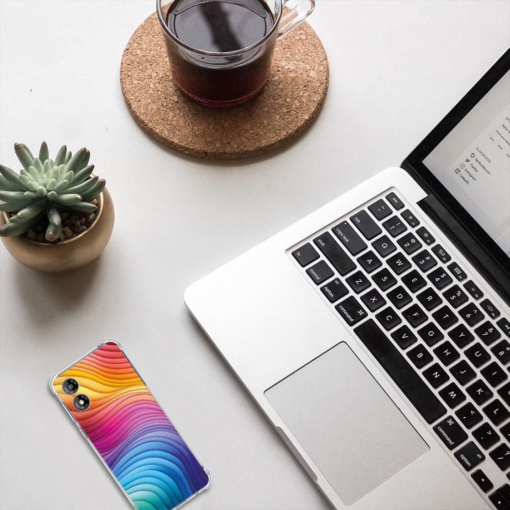 Een regenboog bestaat eigenlijk uit meer dan zeven kleuren, wist je dat? De zichtbare kleuren vloeien geleidelijk in elkaar over, waardoor er eigenlijk meer dan zeven kleuren zijn. Dat wij maar zeven ‘’stroken’’ licht zien, is dus eigenlijk gezichtsbedrog. Toch noemen wij dit hoesje regenboog, omdat wij er blij van worden! Dit design wordt geprint op een Shockproof Case speciaal op maat gemaakt voor de Motorola Moto E13. Ook fijn zijn de extra dikke hoeken en randen, waardoor je smartphone goed beschermd is bij een val. Alleen de achterkant van je telefoon wordt beschermd. Daarom adviseren wij om dit hoesje in combinatie met een screenprotector te gebruiken. Bestel vandaag nog dit telefoonhoesje met regenboog design!