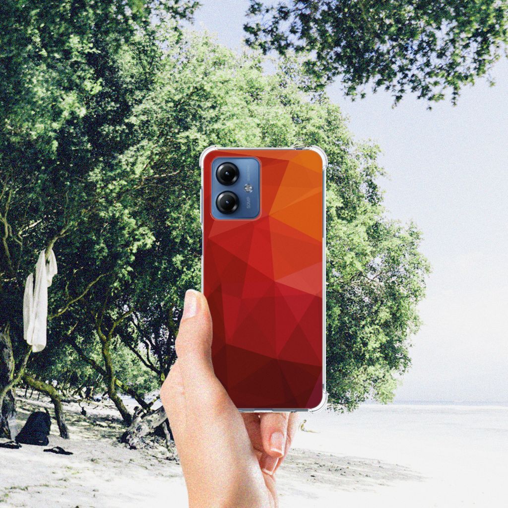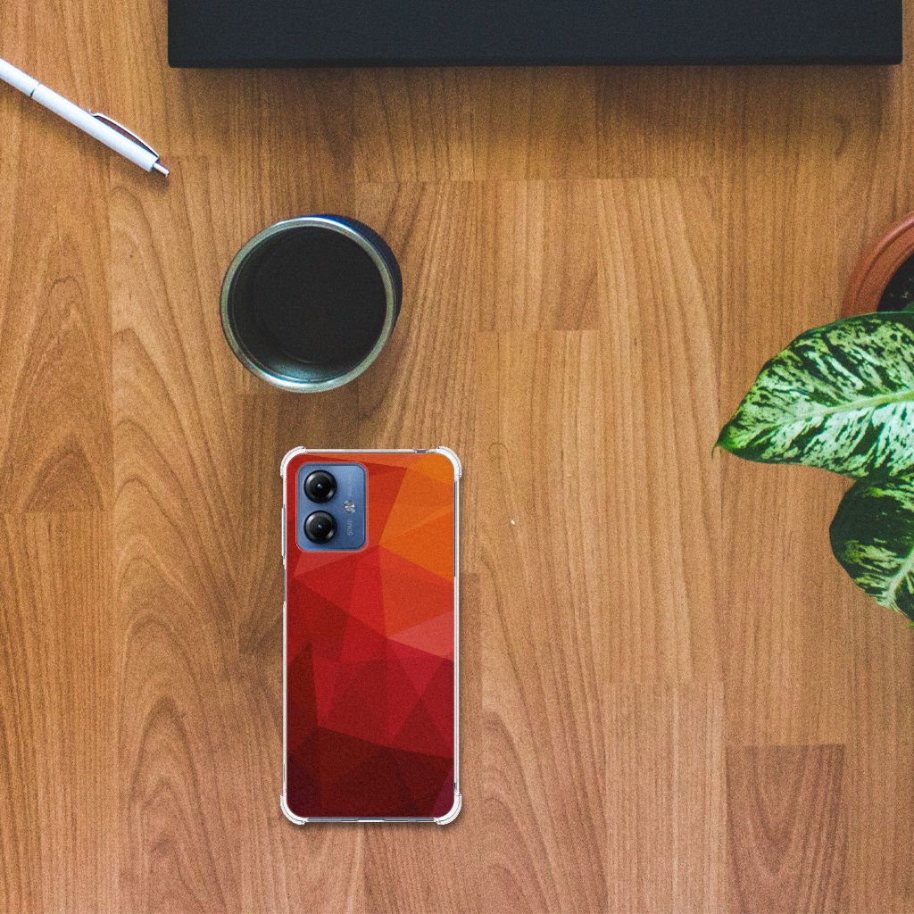 Houd jij van abstracte vormen? Dan is dit polygon red hoesje zeker iets voor jou! Door de verschillende kleuren en het verloop van donker naar licht val je gegarandeerd op met dit hoesje. Dit toffe design voor je Motorola Moto G14 wordt geprint op een Shockproof Case. Het ligt prettig in de hand en is licht van gewicht. Ook fijn zijn de extra dikke hoeken en randen, waardoor je Motorola Moto G14 goed beschermd is bij een val. Alleen de achterkant van je telefoon wordt beschermd. Daarom adviseren wij om dit hoesje in combinatie met een screenprotector te gebruiken. Bestel vandaag nog met dit telefoonhoesje met dit toffe polygon red design!