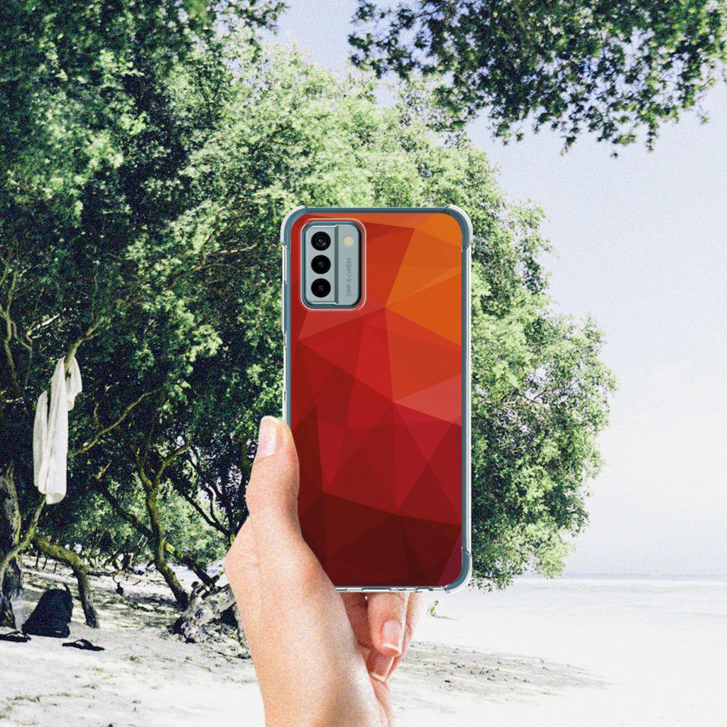 Houd jij van abstracte vormen? Dan is dit polygon red hoesje zeker iets voor jou! Door de verschillende kleuren en het verloop van donker naar licht val je gegarandeerd op met dit hoesje. Dit toffe design voor je Nokia G22 wordt geprint op een Shockproof Case. Het ligt prettig in de hand en is licht van gewicht. Ook fijn zijn de extra dikke hoeken en randen, waardoor je Nokia G22 goed beschermd is bij een val. Alleen de achterkant van je telefoon wordt beschermd. Daarom adviseren wij om dit hoesje in combinatie met een screenprotector te gebruiken. Bestel vandaag nog met dit telefoonhoesje met dit toffe polygon red design!