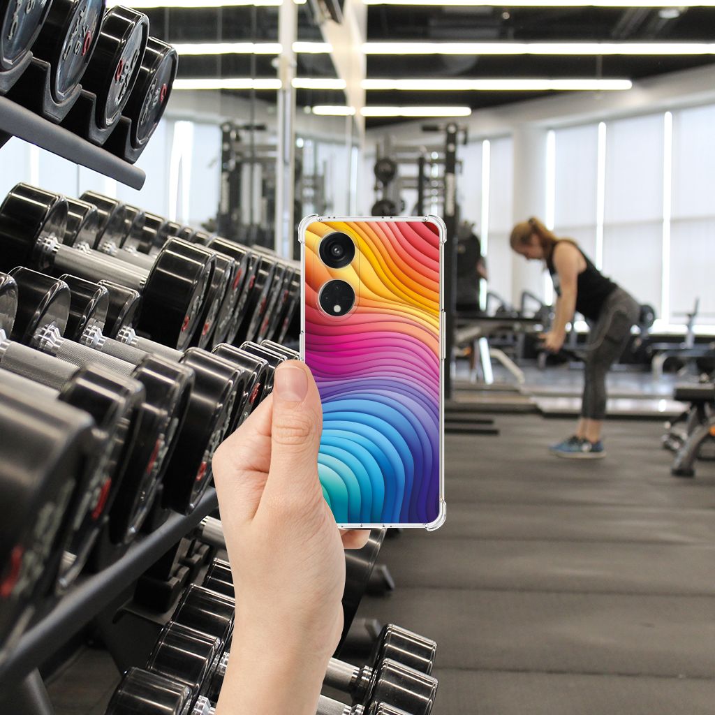 Een regenboog bestaat eigenlijk uit meer dan zeven kleuren, wist je dat? De zichtbare kleuren vloeien geleidelijk in elkaar over, waardoor er eigenlijk meer dan zeven kleuren zijn. Dat wij maar zeven ‘’stroken’’ licht zien, is dus eigenlijk gezichtsbedrog. Toch noemen wij dit hoesje regenboog, omdat wij er blij van worden! Dit design wordt geprint op een Shockproof Case speciaal op maat gemaakt voor de OPPO A98. Ook fijn zijn de extra dikke hoeken en randen, waardoor je smartphone goed beschermd is bij een val. Alleen de achterkant van je telefoon wordt beschermd. Daarom adviseren wij om dit hoesje in combinatie met een screenprotector te gebruiken. Bestel vandaag nog dit telefoonhoesje met regenboog design!