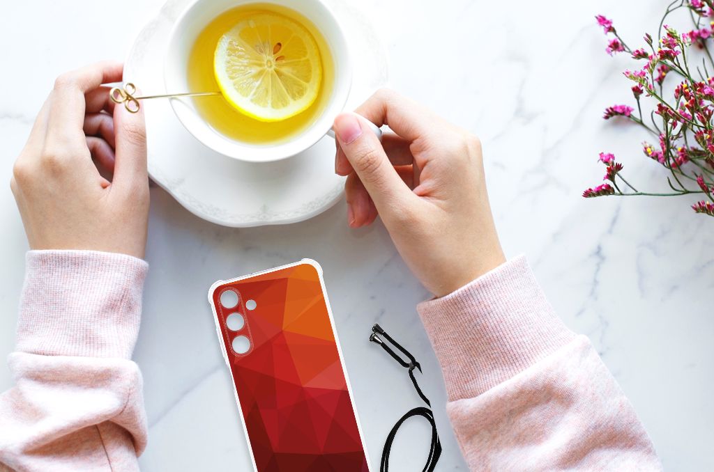 Houd jij van abstracte vormen? Dan is dit polygon red hoesje zeker iets voor jou! Door de verschillende kleuren en het verloop van donker naar licht val je gegarandeerd op met dit hoesje. Dit toffe design voor je Samsung Galaxy A25 wordt geprint op een Shockproof Case. Het ligt prettig in de hand en is licht van gewicht. Ook fijn zijn de extra dikke hoeken en randen, waardoor je Samsung Galaxy A25 goed beschermd is bij een val. Alleen de achterkant van je telefoon wordt beschermd. Daarom adviseren wij om dit hoesje in combinatie met een screenprotector te gebruiken. Bestel vandaag nog met dit telefoonhoesje met dit toffe polygon red design!