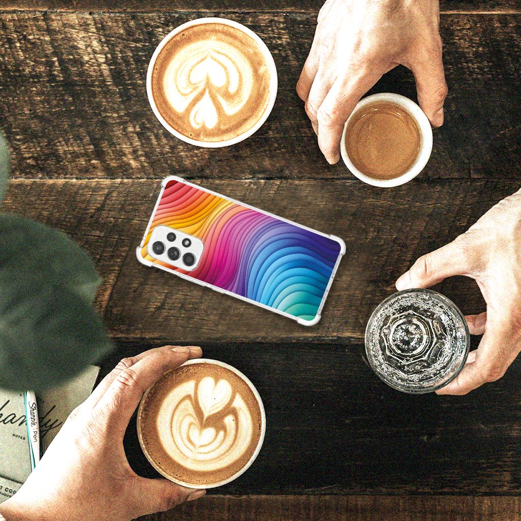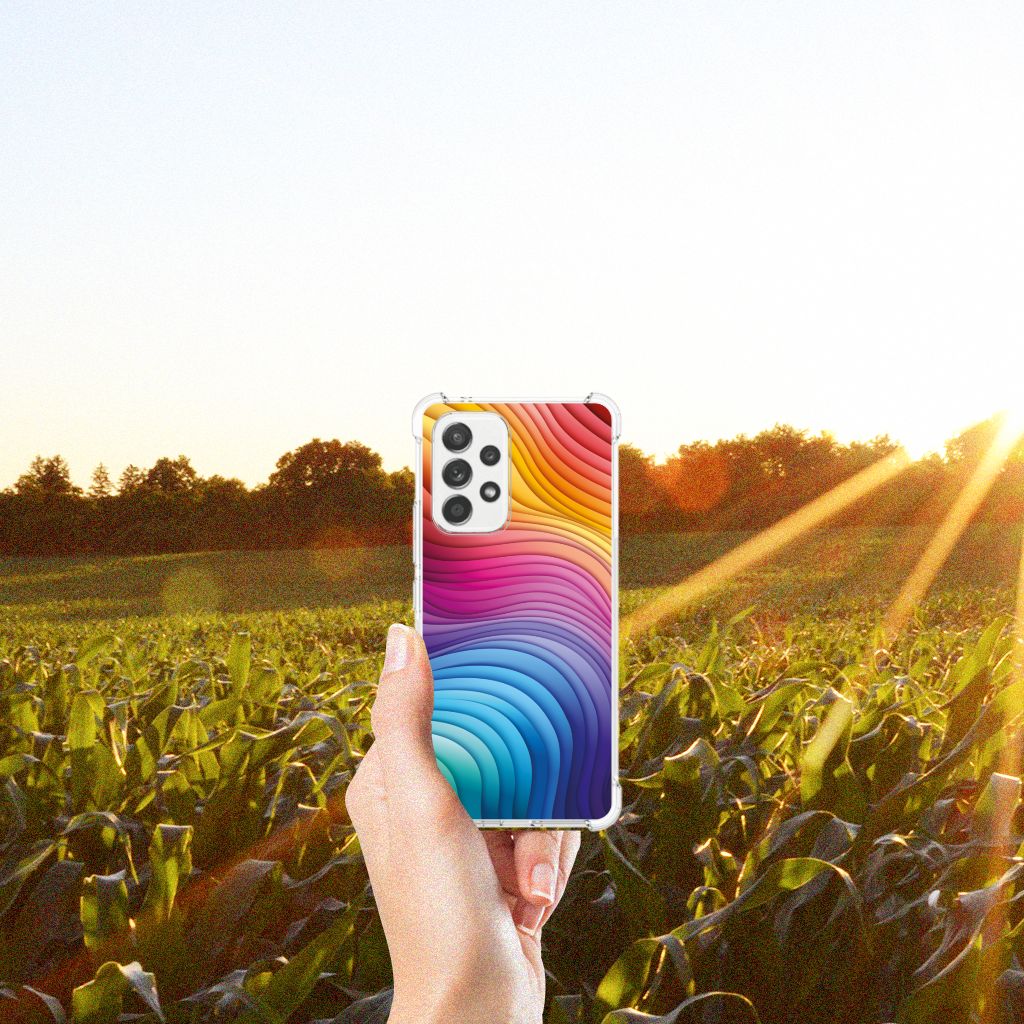 Een regenboog bestaat eigenlijk uit meer dan zeven kleuren, wist je dat? De zichtbare kleuren vloeien geleidelijk in elkaar over, waardoor er eigenlijk meer dan zeven kleuren zijn. Dat wij maar zeven ‘’stroken’’ licht zien, is dus eigenlijk gezichtsbedrog. Toch noemen wij dit hoesje regenboog, omdat wij er blij van worden! Dit design wordt geprint op een Shockproof Case speciaal op maat gemaakt voor de Samsung Galaxy A53 5G. Ook fijn zijn de extra dikke hoeken en randen, waardoor je smartphone goed beschermd is bij een val. Alleen de achterkant van je telefoon wordt beschermd. Daarom adviseren wij om dit hoesje in combinatie met een screenprotector te gebruiken. Bestel vandaag nog dit telefoonhoesje met regenboog design!
