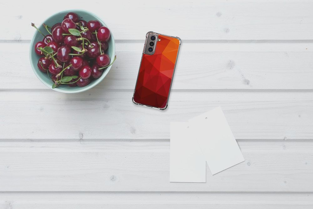 Houd jij van abstracte vormen? Dan is dit polygon red hoesje zeker iets voor jou! Door de verschillende kleuren en het verloop van donker naar licht val je gegarandeerd op met dit hoesje. Dit toffe design voor je Samsung Galaxy S21 wordt geprint op een Shockproof Case. Het ligt prettig in de hand en is licht van gewicht. Ook fijn zijn de extra dikke hoeken en randen, waardoor je Samsung Galaxy S21 goed beschermd is bij een val. Alleen de achterkant van je telefoon wordt beschermd. Daarom adviseren wij om dit hoesje in combinatie met een screenprotector te gebruiken. Bestel vandaag nog met dit telefoonhoesje met dit toffe polygon red design!