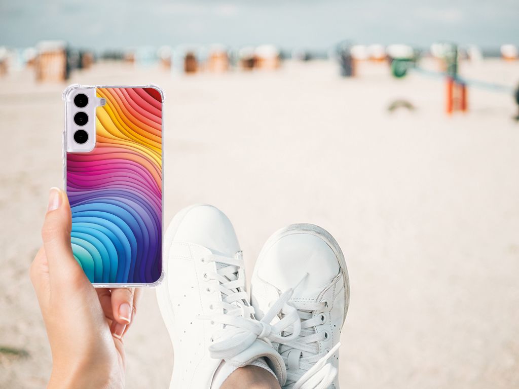 Een regenboog bestaat eigenlijk uit meer dan zeven kleuren, wist je dat? De zichtbare kleuren vloeien geleidelijk in elkaar over, waardoor er eigenlijk meer dan zeven kleuren zijn. Dat wij maar zeven ‘’stroken’’ licht zien, is dus eigenlijk gezichtsbedrog. Toch noemen wij dit hoesje regenboog, omdat wij er blij van worden! Dit design wordt geprint op een Shockproof Case speciaal op maat gemaakt voor de Samsung Galaxy S22. Ook fijn zijn de extra dikke hoeken en randen, waardoor je smartphone goed beschermd is bij een val. Alleen de achterkant van je telefoon wordt beschermd. Daarom adviseren wij om dit hoesje in combinatie met een screenprotector te gebruiken. Bestel vandaag nog dit telefoonhoesje met regenboog design!