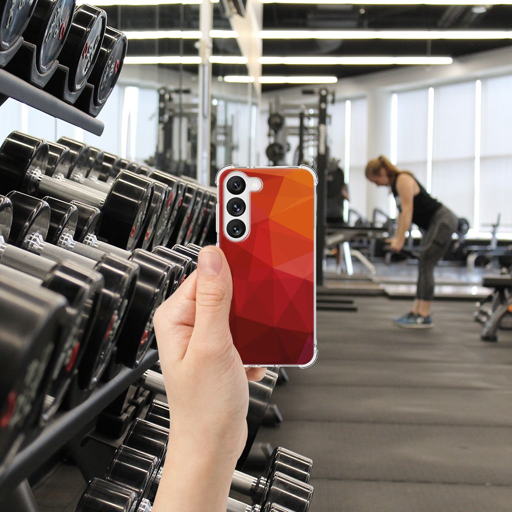 Houd jij van abstracte vormen? Dan is dit polygon red hoesje zeker iets voor jou! Door de verschillende kleuren en het verloop van donker naar licht val je gegarandeerd op met dit hoesje. Dit toffe design voor je Samsung Galaxy S23 wordt geprint op een Shockproof Case. Het ligt prettig in de hand en is licht van gewicht. Ook fijn zijn de extra dikke hoeken en randen, waardoor je Samsung Galaxy S23 goed beschermd is bij een val. Alleen de achterkant van je telefoon wordt beschermd. Daarom adviseren wij om dit hoesje in combinatie met een screenprotector te gebruiken. Bestel vandaag nog met dit telefoonhoesje met dit toffe polygon red design!