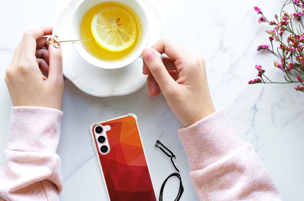 Houd jij van abstracte vormen? Dan is dit polygon red hoesje zeker iets voor jou! Door de verschillende kleuren en het verloop van donker naar licht val je gegarandeerd op met dit hoesje. Dit toffe design voor je Samsung Galaxy S23 wordt geprint op een Shockproof Case. Het ligt prettig in de hand en is licht van gewicht. Ook fijn zijn de extra dikke hoeken en randen, waardoor je Samsung Galaxy S23 goed beschermd is bij een val. Alleen de achterkant van je telefoon wordt beschermd. Daarom adviseren wij om dit hoesje in combinatie met een screenprotector te gebruiken. Bestel vandaag nog met dit telefoonhoesje met dit toffe polygon red design!