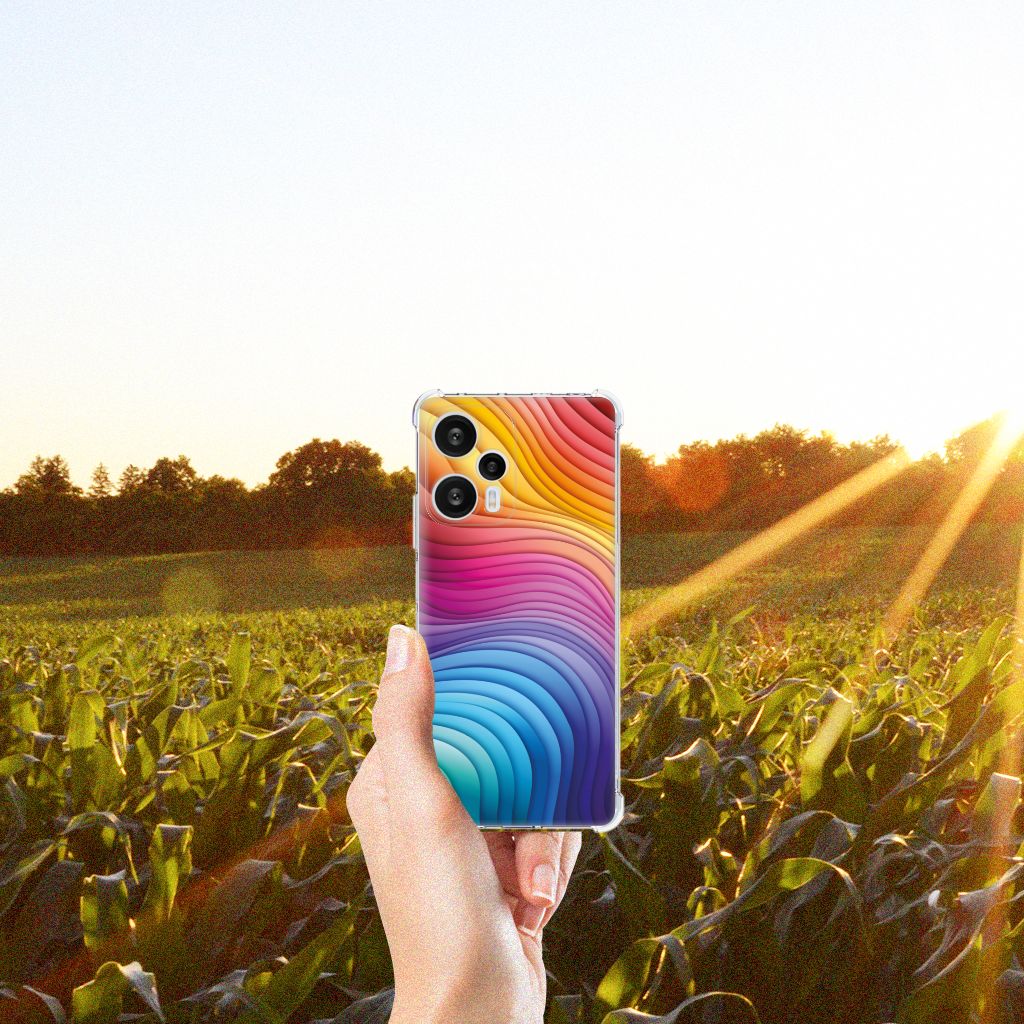 Een regenboog bestaat eigenlijk uit meer dan zeven kleuren, wist je dat? De zichtbare kleuren vloeien geleidelijk in elkaar over, waardoor er eigenlijk meer dan zeven kleuren zijn. Dat wij maar zeven ‘’stroken’’ licht zien, is dus eigenlijk gezichtsbedrog. Toch noemen wij dit hoesje regenboog, omdat wij er blij van worden! Dit design wordt geprint op een Shockproof Case speciaal op maat gemaakt voor de Xiaomi Poco F5. Ook fijn zijn de extra dikke hoeken en randen, waardoor je smartphone goed beschermd is bij een val. Alleen de achterkant van je telefoon wordt beschermd. Daarom adviseren wij om dit hoesje in combinatie met een screenprotector te gebruiken. Bestel vandaag nog dit telefoonhoesje met regenboog design!