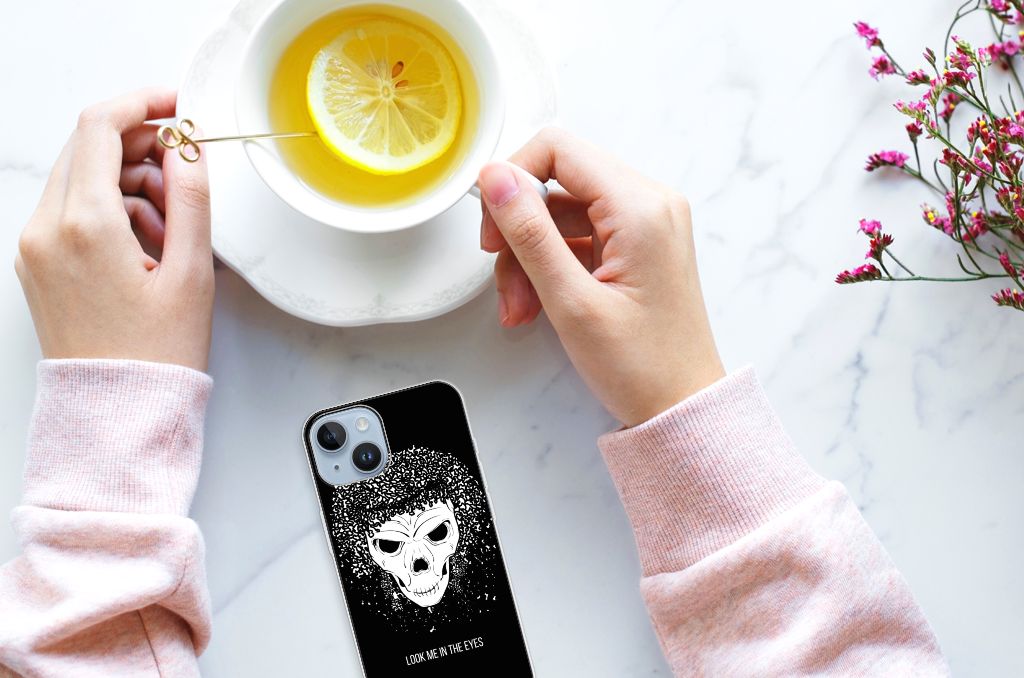 Ben je op zoek naar een uniek telefoonhoesje voor je Apple iPhone 14? Dan ben je bij B2C Telecom aan het juiste adres! Speciaal voor jou hebben we dit prachtige Skull Hair design in onze collectie hoesjes opgenomen. Het design wordt bedrukt op een Silicone Back Case en is gemaakt van flexibel rubber. Het design wordt alleen aan de bovenkant van het hoesje bedrukt en de randen blijven transparant. Aan de zijkanten zijn uitsparingen gemaakt waardoor je met gemak alle knoppen en poorten kunt bedienen. Wij adviseren om dit hoesje in combinatie met een screenprotector te gebruiken voor een langere levensduur van je telefoon. Wil je dit design hoesje nog iets extra's geven? Voeg dan gratis je naam of een quote toe! Is dit design hoesje toch niet helemaal wat je zocht? Ontwerp dan zelf een hoesje in ons ontwerpprogramma.