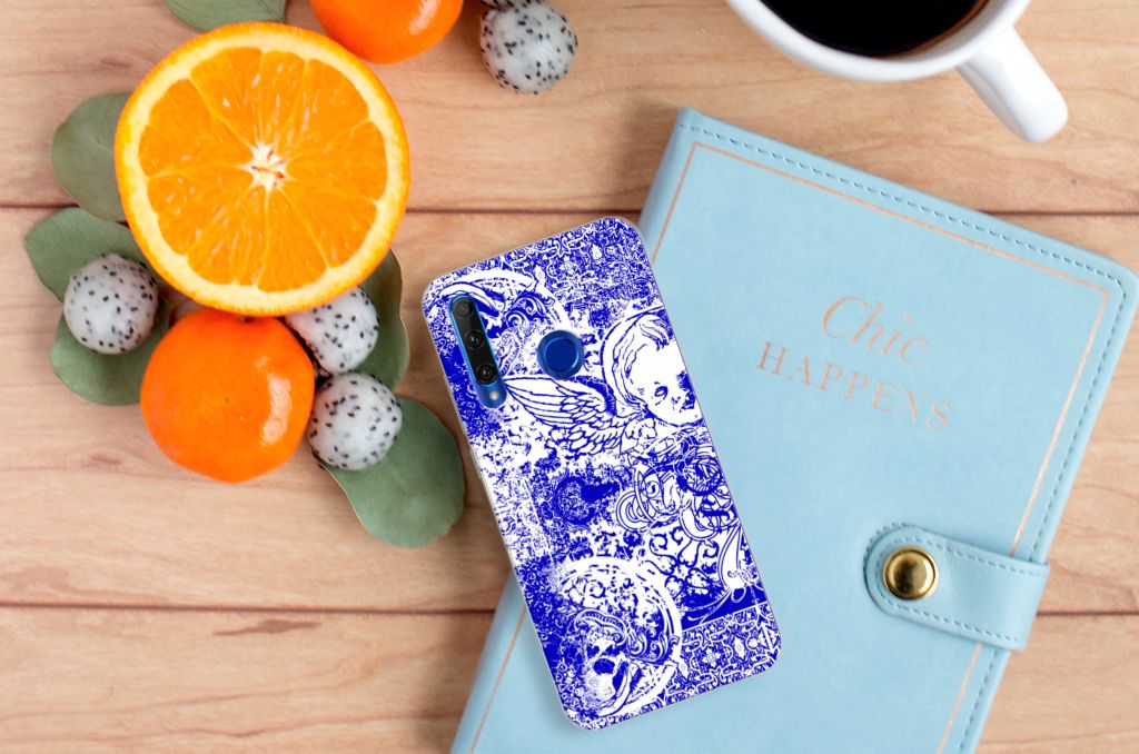 Dit ietwat duistere blauwe patroon tref je vaak aan op een bandana. Een bandana wordt om het hoofd of de hals gedragen. Een bandana is ideaal als je op de racefiets, motor of de brommer zit en jezelf wilt beschermen tegen wind, opwaaiend stof of fijn zand. Leden van motorclubs dragen dit soort bandana’s dan ook graag. Wil je jouw Honor 20 Lite optimaal beschermen tegen opwaaiend stof, zand of andere bedreigingen, dan is dit design hoesje met Angel Skull Blue design een zeer goede keus. Het design staat op een TPU case. Dit Silicone Back Case wordt alleen aan de bovenkant bedrukt en is zeer flexibel. De randen van het hoesje blijven transparant en worden niet bedrukt. Met dit hoesje past jouw telefoon altijd in je broekzak.