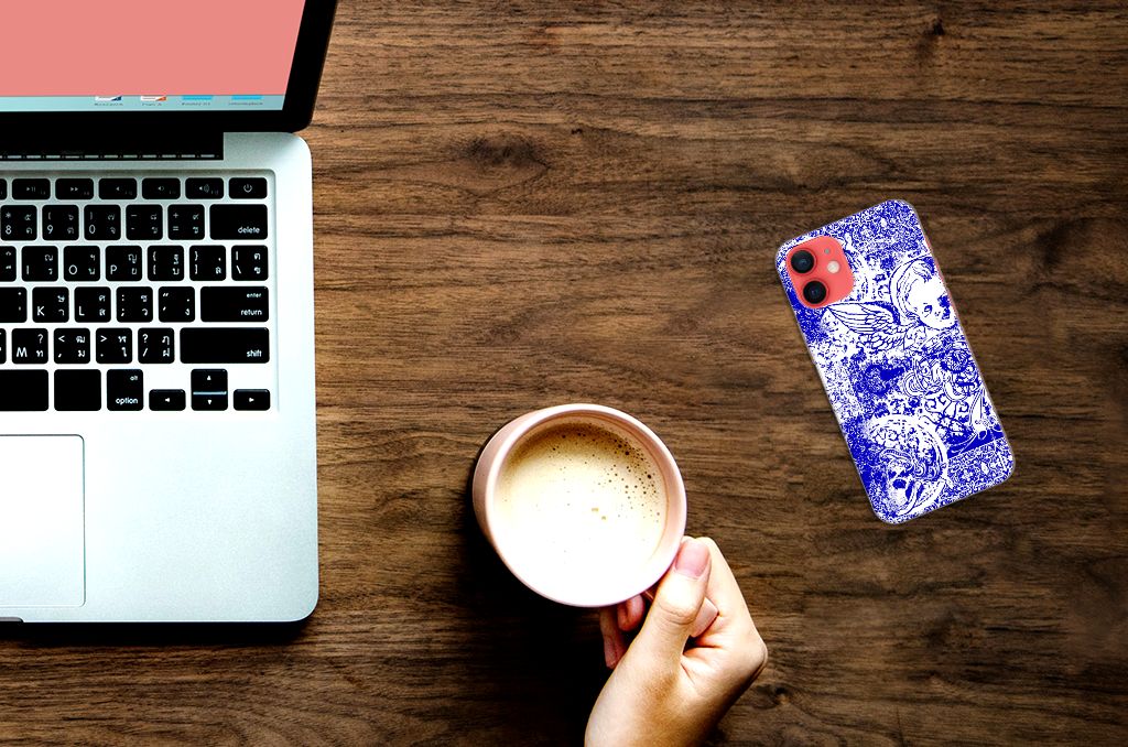 Dit ietwat duistere blauwe patroon tref je vaak aan op een bandana. Een bandana wordt om het hoofd of de hals gedragen. Een bandana is ideaal als je op de racefiets, motor of de brommer zit en jezelf wilt beschermen tegen wind, opwaaiend stof of fijn zand. Leden van motorclubs dragen dit soort bandana’s dan ook graag. Wil je jouw iPhone 12 Mini optimaal beschermen tegen opwaaiend stof, zand of andere bedreigingen, dan is dit design hoesje met Angel Skull Blue design een zeer goede keus. Het design staat op een TPU case. Dit Silicone Back Case wordt alleen aan de bovenkant bedrukt en is zeer flexibel. De randen van het hoesje blijven transparant en worden niet bedrukt. Met dit hoesje past jouw telefoon altijd in je broekzak.