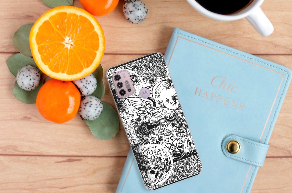 Dit mysterieuze patroon tref je vaak aan op een bandana. Een bandana is een kledingstuk dat om het hoofd of de hals wordt gedragen. Behalve als kledingstuk vindt de bandana soms toepassing als signaal. Een bandana is het eenvoudigste middel als je op de motor of de brommer zit en jezelf wilt beschermen tegen wind, opwaaiend stof of fijn zand. Leden van bekende motorclubs dragen dit kledingstuk dan ook graag, om meerdere redenen. Wil je jouw Motorola Moto G30 | G10 optimaal beschermen tegen opwaaiend stof, zand of andere bedreigingen, dan is dit design hoesje met Skulls Angel een zeer goede keus. Het design staat op een TPU case. Dit Silicone Back Case wordt alleen aan de bovenkant bedrukt en is zeer flexibel. De randen van het hoesje blijven transparant en worden niet bedrukt. Met dit hoesje past jouw telefoon altijd in je broekzak.