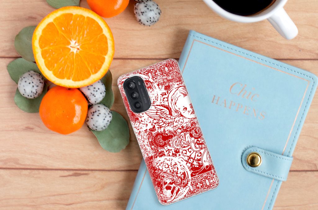 Altijd al een mysterieus patroon in de vorm van een bandana op een design hoesje willen hebben? Dit stoere Motorola Moto G52/G82 Silicone Back Case met het design Angel Skull Red is het ideale kledingstuk voor jouw telefoon. Een bandana is het eenvoudigste middel als je op de motor of de brommer zit en jezelf wilt beschermen tegen wind, opwaaiend stof of fijn zand. Leden van bekende motorclubs dragen dit dan ook graag. Wil jouw telefoon optimaal beschermen tegen opwaaiend stof, zand of andere bedreigingen, dan is dit design hoesje met bandana een zeer goede keus. Deze TPU case wordt alleen aan de bovenkant bedrukt en is zeer flexibel. De randen van het hoesje blijven transparant en worden niet bedrukt. Met dit hoesje past jouw telefoon altijd in je broekzak. Ga voor deze mooie TPU hoes met bandana print.