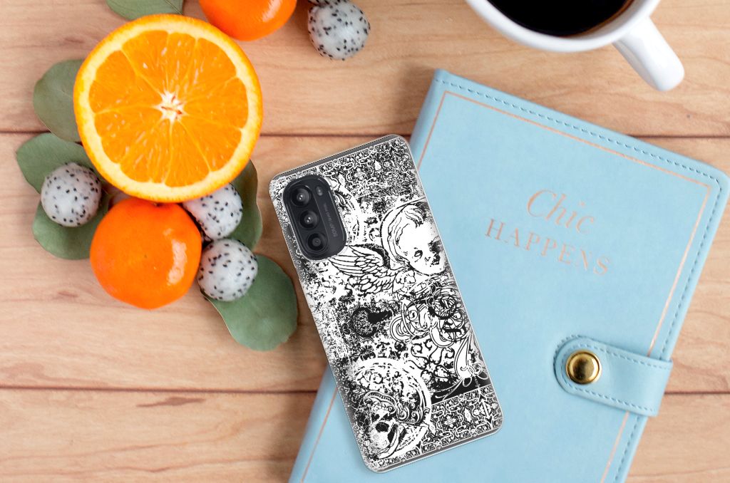 Dit mysterieuze patroon tref je vaak aan op een bandana. Een bandana is een kledingstuk dat om het hoofd of de hals wordt gedragen. Behalve als kledingstuk vindt de bandana soms toepassing als signaal. Een bandana is het eenvoudigste middel als je op de motor of de brommer zit en jezelf wilt beschermen tegen wind, opwaaiend stof of fijn zand. Leden van bekende motorclubs dragen dit kledingstuk dan ook graag, om meerdere redenen. Wil je jouw Motorola Moto G52/G82 optimaal beschermen tegen opwaaiend stof, zand of andere bedreigingen, dan is dit design hoesje met Skulls Angel een zeer goede keus. Het design staat op een TPU case. Dit Silicone Back Case wordt alleen aan de bovenkant bedrukt en is zeer flexibel. De randen van het hoesje blijven transparant en worden niet bedrukt. Met dit hoesje past jouw telefoon altijd in je broekzak.