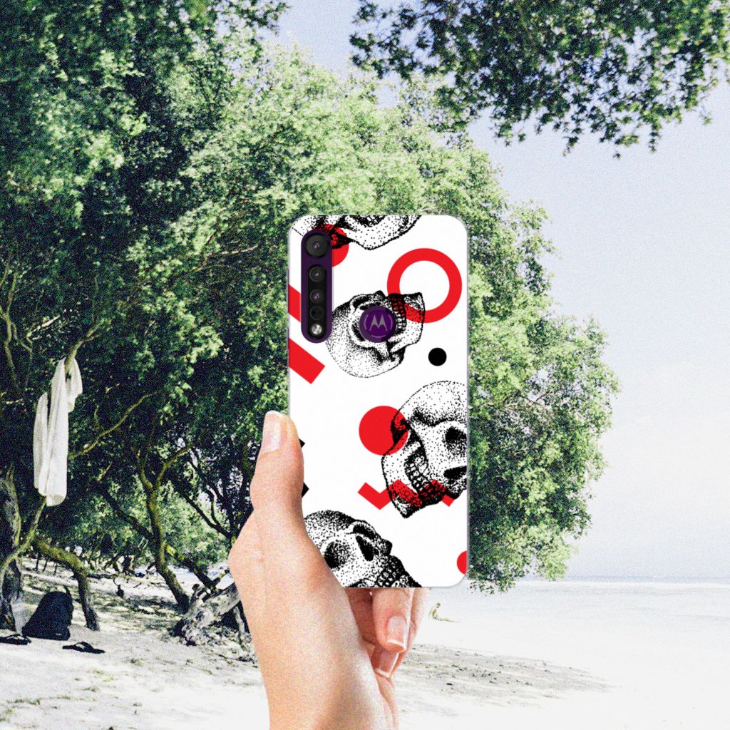 Deze mooie Motorola One Macro Silicone Back Case met Skull Red design is een stoere en duurzame bescherming voor jouw smartphone. De rode en witte patronen komen vloeiend samen met de schedel worden op alle zijden van de case bedrukt. Het printen doen we in eigen beheer, zodat we zeker weten dat het design van schedel en rode en witte patronen van uitstekende kwaliteit is. Het smartphone hoesje met schedel en rode en witte patronen is zeer flexibel. Een tpu hoesje is perfect op maat gemaakt en heeft een mooie uitstraling. Daarnaast is de case zeer flexibel en het materiaal is onbreekbaar. De case heeft opstaande randen ter bescherming van het scherm. De randen van het tpu hoesje worden niet met de schedel en rode en witte patronen bedrukt. Kijk voor andere patronen samen met schedels in ons assortiment design hoesjes of ontwerp je eigen unieke case!