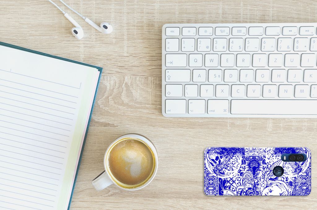 Dit ietwat duistere blauwe patroon tref je vaak aan op een bandana. Een bandana wordt om het hoofd of de hals gedragen. Een bandana is ideaal als je op de racefiets, motor of de brommer zit en jezelf wilt beschermen tegen wind, opwaaiend stof of fijn zand. Leden van motorclubs dragen dit soort bandana’s dan ook graag. Wil je jouw Motorola One Vision optimaal beschermen tegen opwaaiend stof, zand of andere bedreigingen, dan is dit design hoesje met Angel Skull Blue design een zeer goede keus. Het design staat op een TPU case. Dit Silicone Back Case wordt alleen aan de bovenkant bedrukt en is zeer flexibel. De randen van het hoesje blijven transparant en worden niet bedrukt. Met dit hoesje past jouw telefoon altijd in je broekzak.