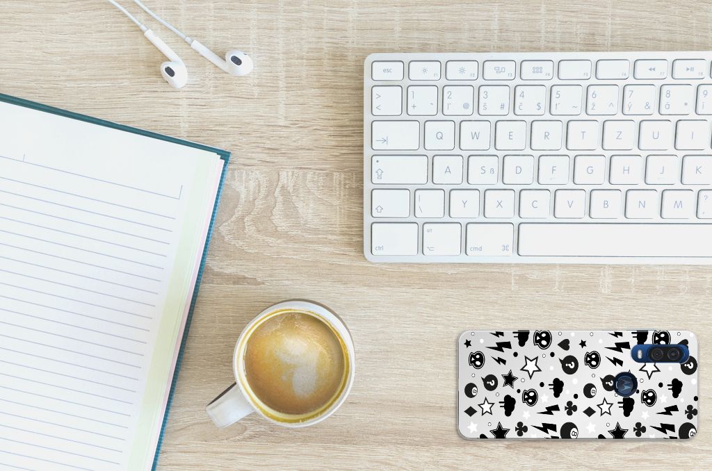 Bliksemflitsen, donderwolken, sterren en biljartballen vliegen op je af als je deze Motorola One Vision Silicone Back Case koopt. Het bijzondere Silver Punk design is van onze eigen ontwerper en vind je in geen enkel andere winkel of webshop. Ben je fan van dit soort stoere en opvallende hoesjes, dan kun je je geluk niet op als je ons assortiment smartphone accessoires bekijkt. Dit zeer flexibele smartphone hoesje heeft alle nodige uitsparingen en past altijd in je broekzak. De tpu case is aan de bovenkant bedrukt met bliksemflitsen, donderwolken, sterren en biljartballen, de randen blijven transparant. Het TPU is onbreekbaar. Zelfs doodshoofdjes zie je voorbijkomen in het design. Om maar aan te geven dat je met dit zilveren hoesje een krachtige smartphone accessoire te pakken hebt.