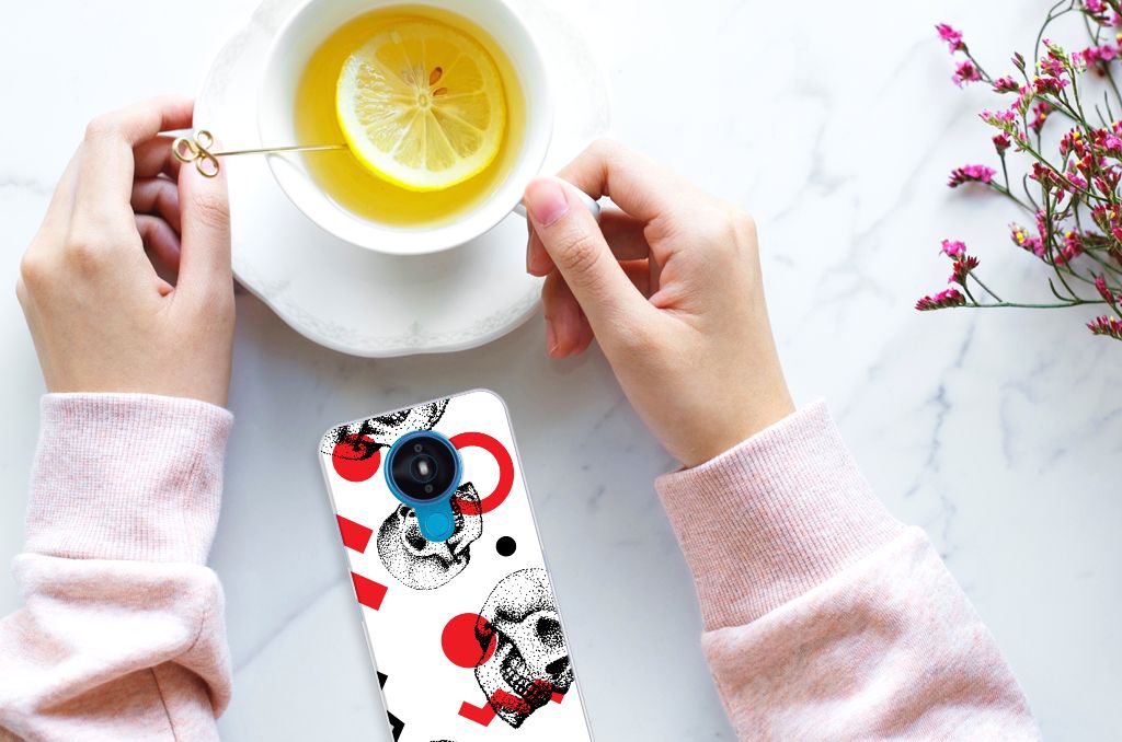 Deze mooie Nokia 1.4 Silicone Back Case met Skull Red design is een stoere en duurzame bescherming voor jouw smartphone. De rode en witte patronen komen vloeiend samen met de schedel worden op alle zijden van de case bedrukt. Het printen doen we in eigen beheer, zodat we zeker weten dat het design van schedel en rode en witte patronen van uitstekende kwaliteit is. Het smartphone hoesje met schedel en rode en witte patronen is zeer flexibel. Een tpu hoesje is perfect op maat gemaakt en heeft een mooie uitstraling. Daarnaast is de case zeer flexibel en het materiaal is onbreekbaar. De case heeft opstaande randen ter bescherming van het scherm. De randen van het tpu hoesje worden niet met de schedel en rode en witte patronen bedrukt. Kijk voor andere patronen samen met schedels in ons assortiment design hoesjes of ontwerp je eigen unieke case!