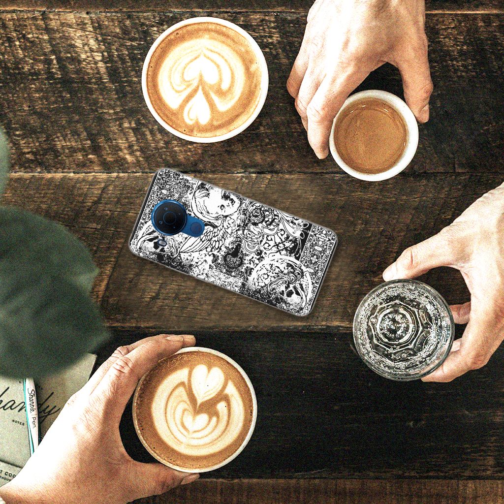 Dit mysterieuze patroon tref je vaak aan op een bandana. Een bandana is een kledingstuk dat om het hoofd of de hals wordt gedragen. Behalve als kledingstuk vindt de bandana soms toepassing als signaal. Een bandana is het eenvoudigste middel als je op de motor of de brommer zit en jezelf wilt beschermen tegen wind, opwaaiend stof of fijn zand. Leden van bekende motorclubs dragen dit kledingstuk dan ook graag, om meerdere redenen. Wil je jouw Nokia 5.4 optimaal beschermen tegen opwaaiend stof, zand of andere bedreigingen, dan is dit design hoesje met Skulls Angel een zeer goede keus. Het design staat op een TPU case. Dit Silicone Back Case wordt alleen aan de bovenkant bedrukt en is zeer flexibel. De randen van het hoesje blijven transparant en worden niet bedrukt. Met dit hoesje past jouw telefoon altijd in je broekzak.