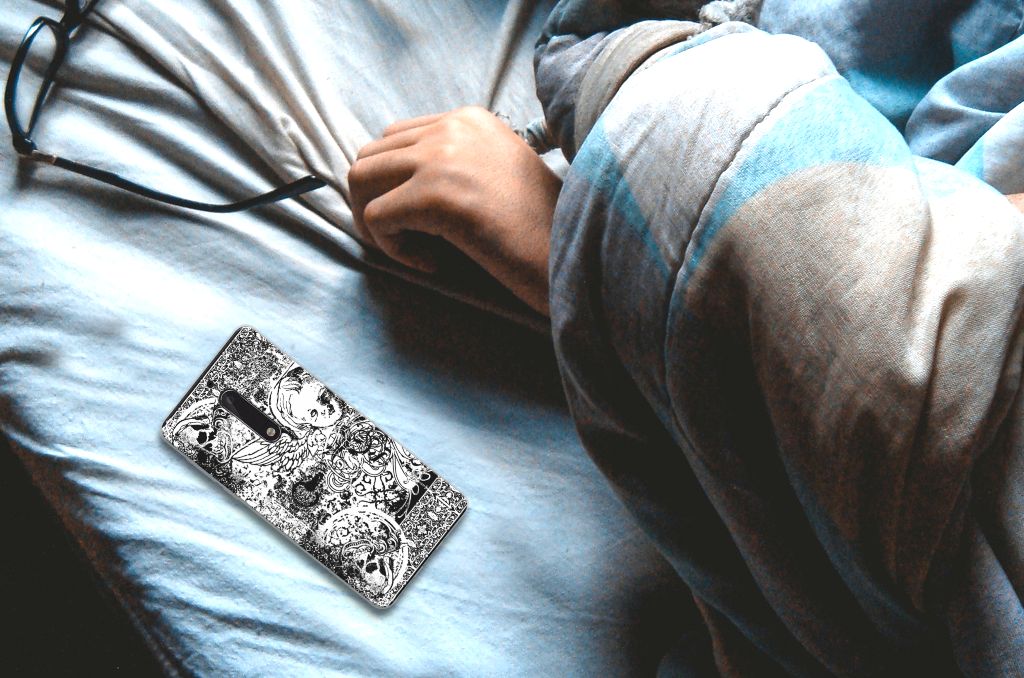 Dit mysterieuze patroon tref je vaak aan op een bandana. Een bandana is een kledingstuk dat om het hoofd of de hals wordt gedragen. Behalve als kledingstuk vindt de bandana soms toepassing als signaal. Een bandana is het eenvoudigste middel als je op de motor of de brommer zit en jezelf wilt beschermen tegen wind, opwaaiend stof of fijn zand. Leden van bekende motorclubs dragen dit kledingstuk dan ook graag, om meerdere redenen. Wil je jouw Nokia 5 optimaal beschermen tegen opwaaiend stof, zand of andere bedreigingen, dan is dit design hoesje met Skulls Angel een zeer goede keus. Het design staat op een TPU case. Dit Silicone Back Case wordt alleen aan de bovenkant bedrukt en is zeer flexibel. De randen van het hoesje blijven transparant en worden niet bedrukt. Met dit hoesje past jouw telefoon altijd in je broekzak.