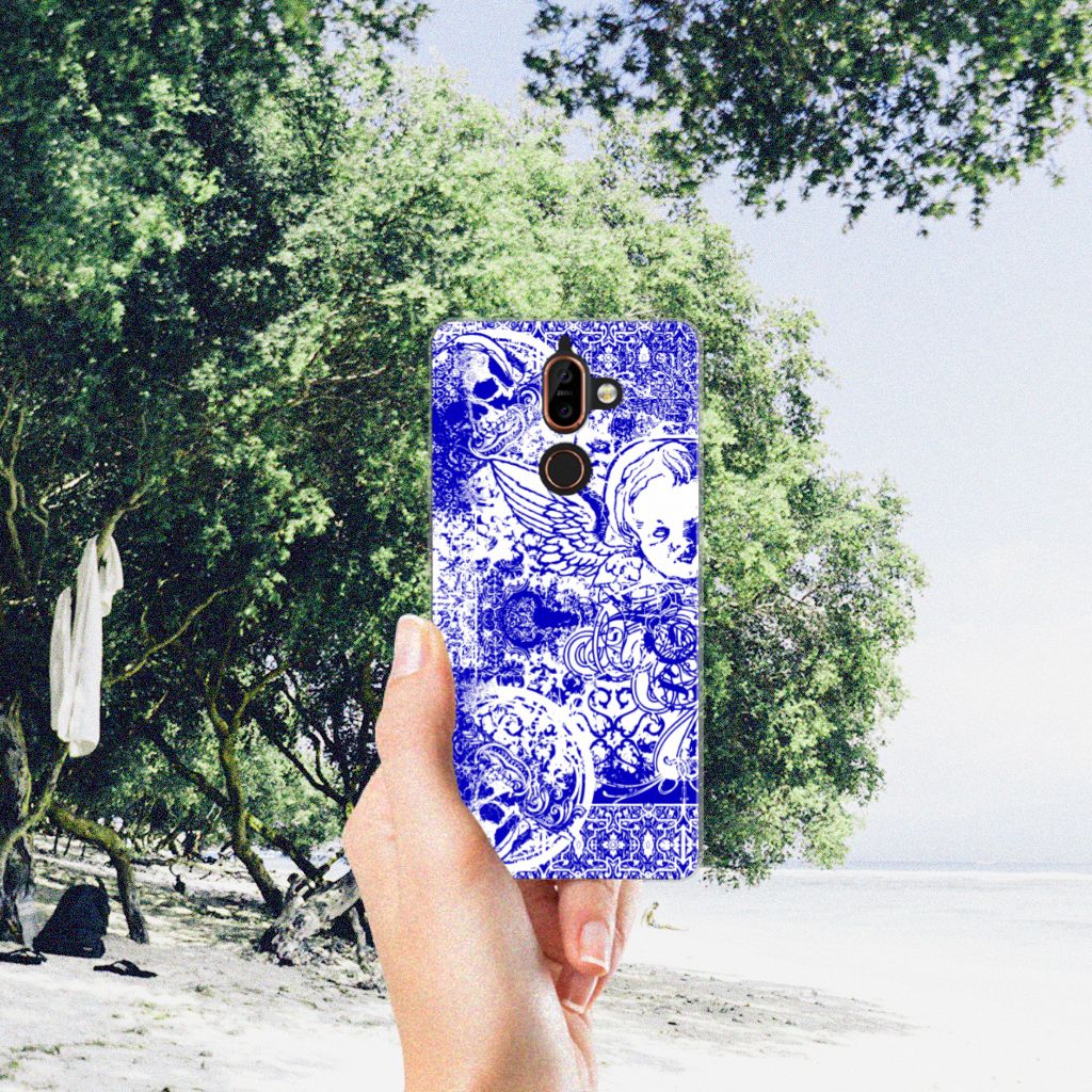 Dit ietwat duistere blauwe patroon tref je vaak aan op een bandana. Een bandana wordt om het hoofd of de hals gedragen. Een bandana is ideaal als je op de racefiets, motor of de brommer zit en jezelf wilt beschermen tegen wind, opwaaiend stof of fijn zand. Leden van motorclubs dragen dit soort bandana’s dan ook graag. Wil je jouw Nokia 7 Plus optimaal beschermen tegen opwaaiend stof, zand of andere bedreigingen, dan is dit design hoesje met Angel Skull Blue design een zeer goede keus. Het design staat op een TPU case. Dit Silicone Back Case wordt alleen aan de bovenkant bedrukt en is zeer flexibel. De randen van het hoesje blijven transparant en worden niet bedrukt. Met dit hoesje past jouw telefoon altijd in je broekzak.
