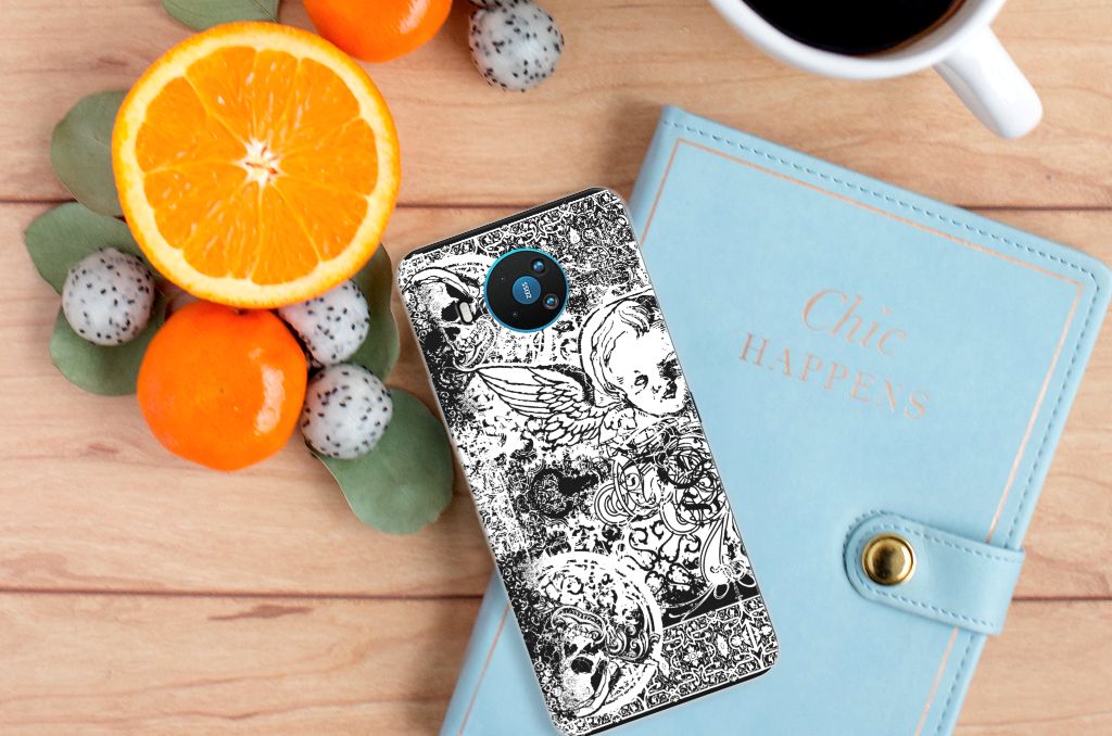 Dit mysterieuze patroon tref je vaak aan op een bandana. Een bandana is een kledingstuk dat om het hoofd of de hals wordt gedragen. Behalve als kledingstuk vindt de bandana soms toepassing als signaal. Een bandana is het eenvoudigste middel als je op de motor of de brommer zit en jezelf wilt beschermen tegen wind, opwaaiend stof of fijn zand. Leden van bekende motorclubs dragen dit kledingstuk dan ook graag, om meerdere redenen. Wil je jouw Nokia 8.3 optimaal beschermen tegen opwaaiend stof, zand of andere bedreigingen, dan is dit design hoesje met Skulls Angel een zeer goede keus. Het design staat op een TPU case. Dit Silicone Back Case wordt alleen aan de bovenkant bedrukt en is zeer flexibel. De randen van het hoesje blijven transparant en worden niet bedrukt. Met dit hoesje past jouw telefoon altijd in je broekzak.