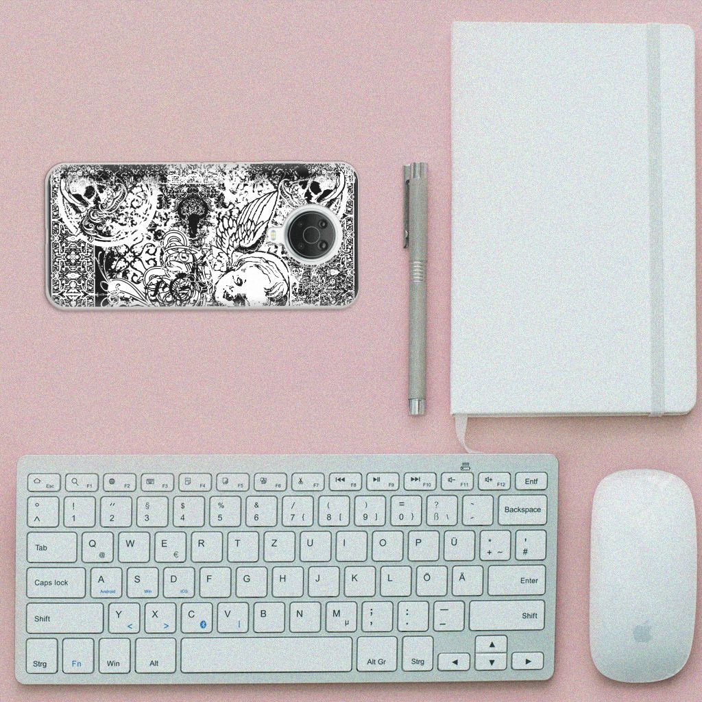 Dit mysterieuze patroon tref je vaak aan op een bandana. Een bandana is een kledingstuk dat om het hoofd of de hals wordt gedragen. Behalve als kledingstuk vindt de bandana soms toepassing als signaal. Een bandana is het eenvoudigste middel als je op de motor of de brommer zit en jezelf wilt beschermen tegen wind, opwaaiend stof of fijn zand. Leden van bekende motorclubs dragen dit kledingstuk dan ook graag, om meerdere redenen. Wil je jouw Nokia G20 | G10 optimaal beschermen tegen opwaaiend stof, zand of andere bedreigingen, dan is dit design hoesje met Skulls Angel een zeer goede keus. Het design staat op een TPU case. Dit Silicone Back Case wordt alleen aan de bovenkant bedrukt en is zeer flexibel. De randen van het hoesje blijven transparant en worden niet bedrukt. Met dit hoesje past jouw telefoon altijd in je broekzak.